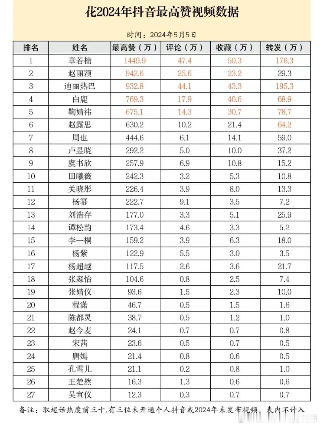 今年热门花生的抖数据。抖人更爱女明星呢。