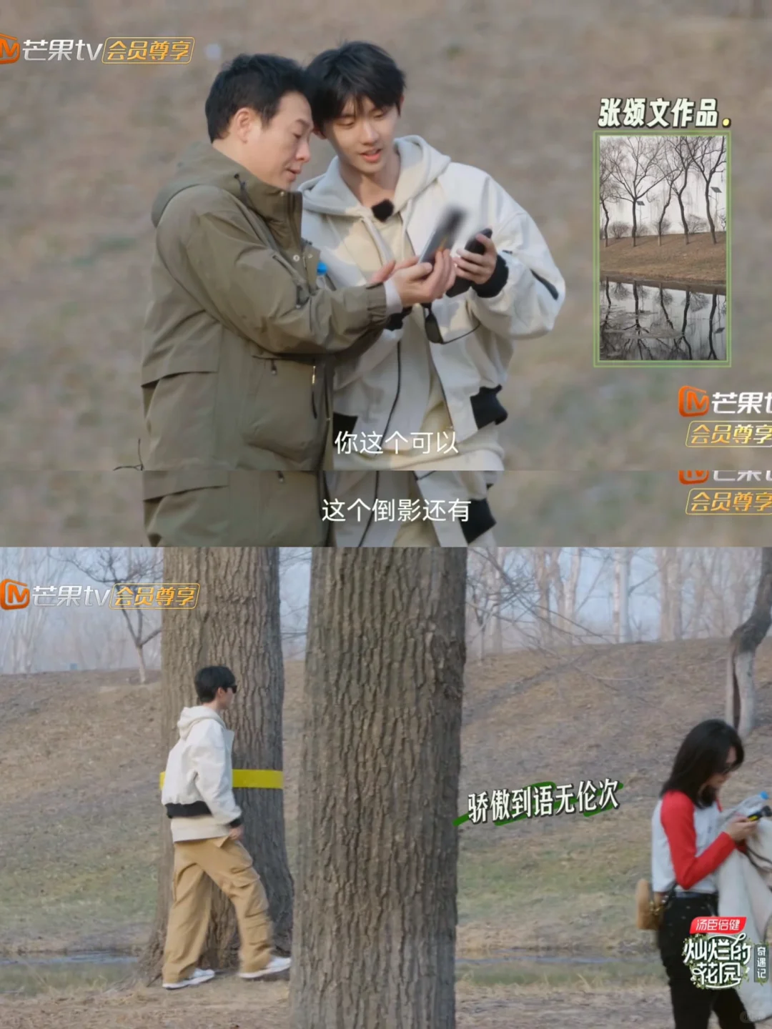 ✅全员拍照大赛,张颂文和马嘉祺同一角度仰拍,发现马嘉祺拍出来的感觉更棒,立马重新拍了一张,连倒影都用上了,“我这次肯定能赢你了!”