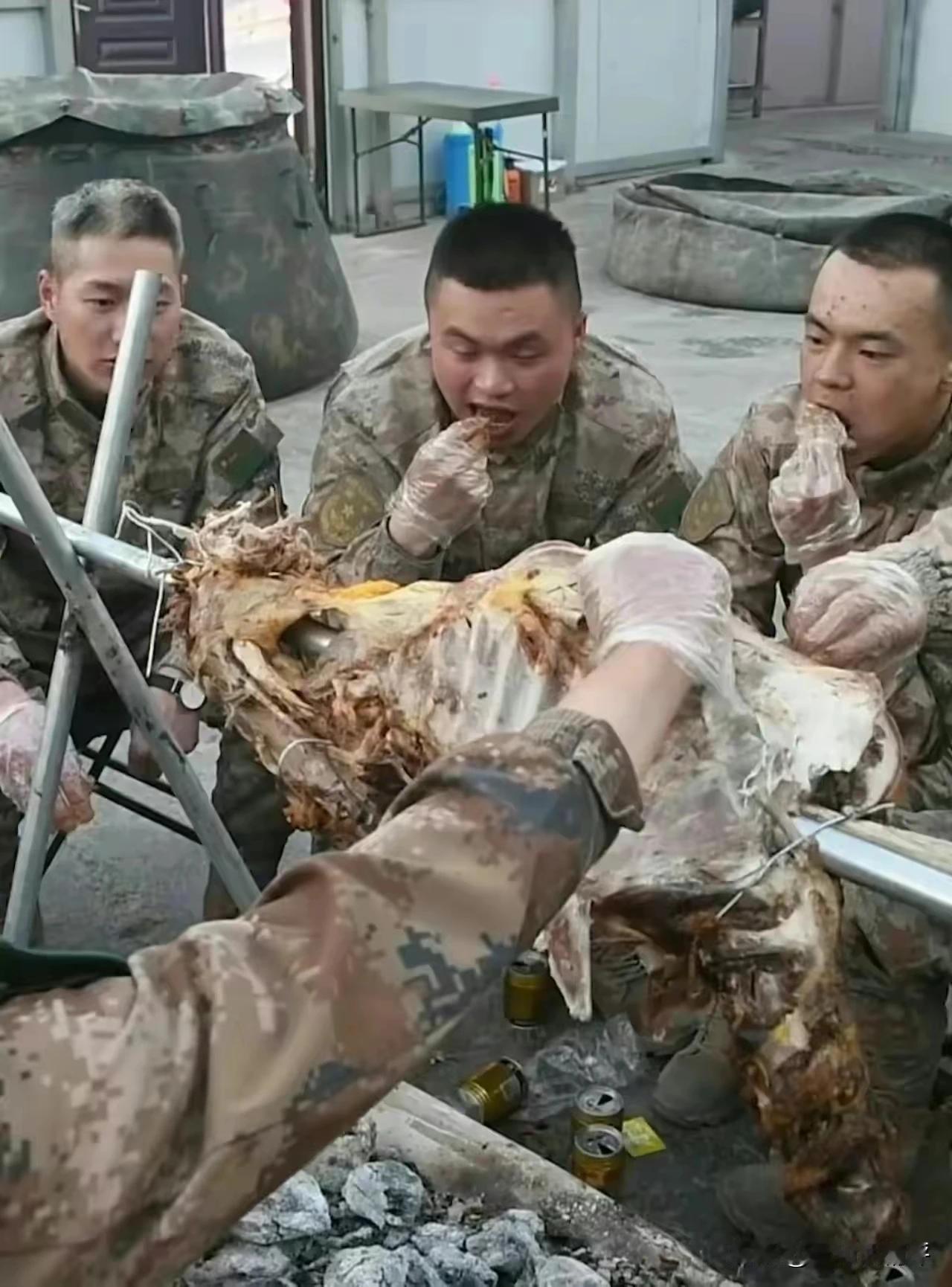 三张照片,看的我好生怀念! 这三张图是真的,太熟悉了,因为以前也经历过! 据说照片里的是戍边的孩子们。不是说部队现在伙食好到这样了。而是咱不能差事,过节我们四处溜达着玩,孩子们还在戍边。领导们想办法带着孩子们搞个烤全羊,改善下伙食,放松下心情,真是太好了。 枯燥的生活,高压力的环境,偶尔改善下伙食,真的不错。吃出团结,吃出战斗力! 保家卫国的孩子们辛苦了!