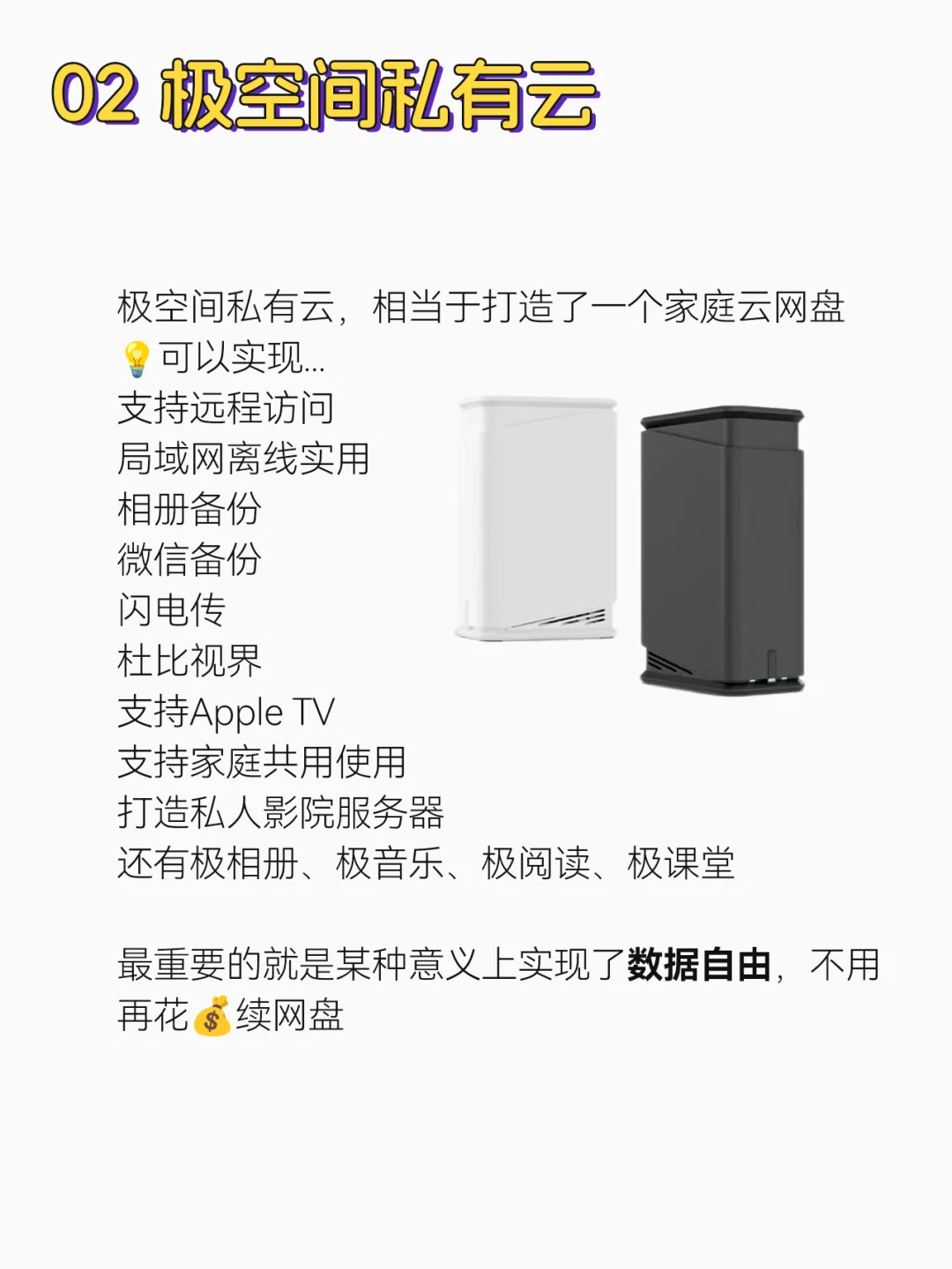 工作以后对文件空间需求越来越大,最初是备份到某网盘,可这会员💰越来越贵,动不动就文件丢失[哭惹R]后来选择备份到本地3台移动硬盘,还是不方便,去哪都要背着,而且到现在也快装满了!直到前不久整了台极空间私有云,算是解决了这方面的问题
