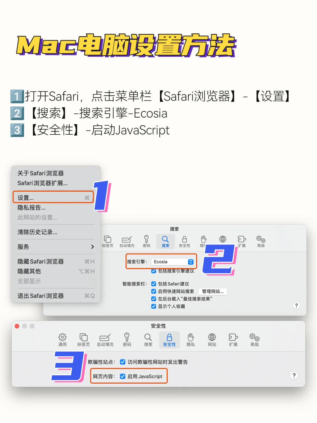 1️⃣打开Safari,点击左上角菜单栏【Safari浏览器】-【设置】