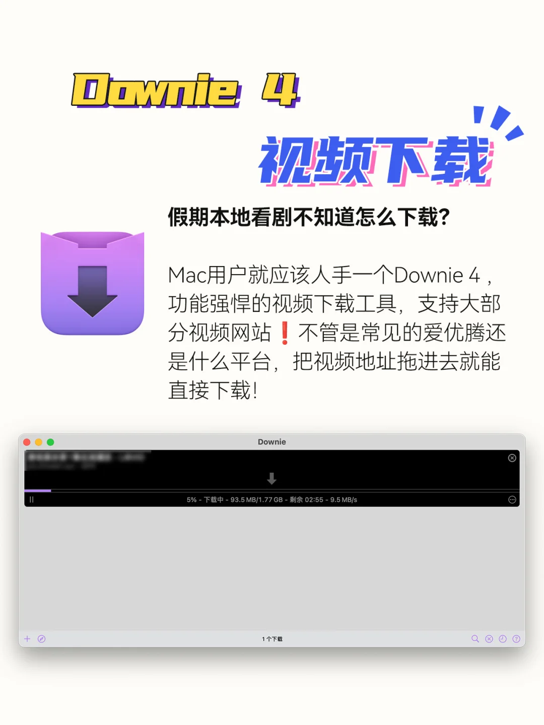 但有些网站无法下载,这时候就需要Downie啦。Mac用户就应该人手一个❗️功能强悍的视频下载工具,支持绝大部分视频网站,不管是常见的爱优腾还是什么平台,把视频地址拖进去就能直接下载!