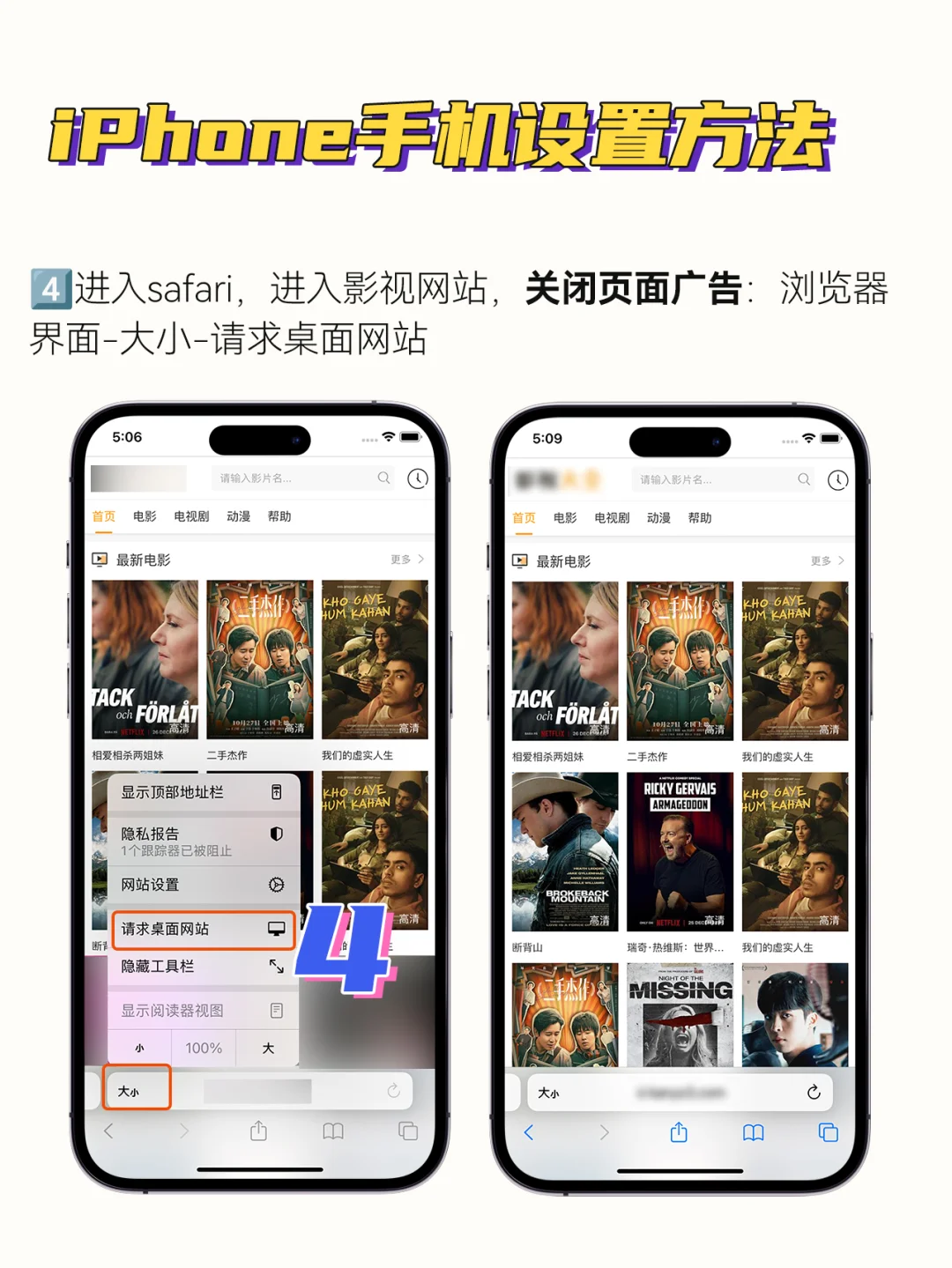 4️⃣关闭页面广告:浏览器界面-大小-请求桌面网站