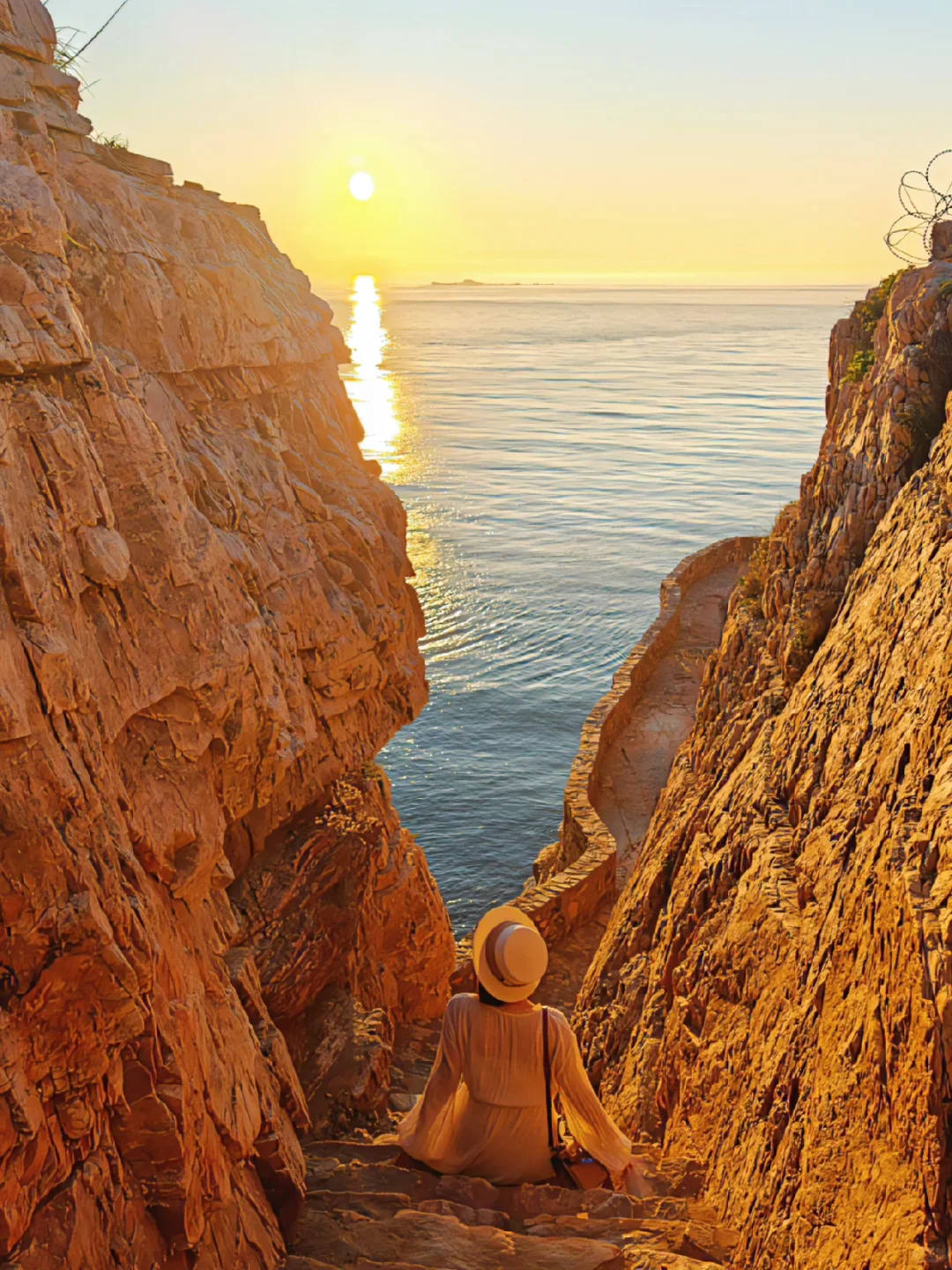 夕阳给崖壁镀上了一层金色