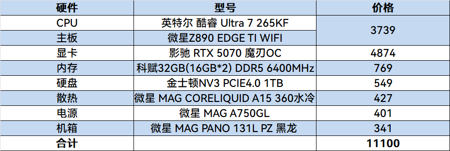 双7齐开花 Intel Ultra7+Z890+RTX5070
