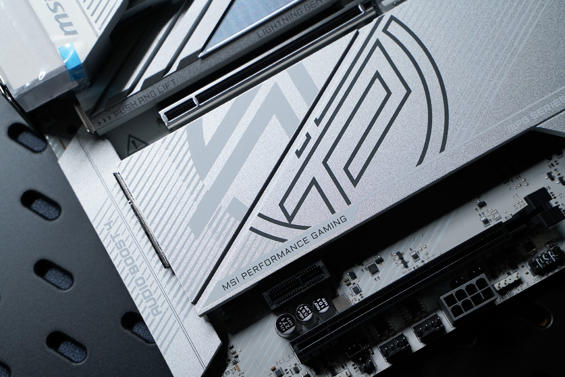 主板上直连 CPU 的 PCIe 5.0 x16 插槽 采用 金属装甲加固设计,大幅提升结构强度,轻松应对当下愈发厚重的高端显卡。该插槽提供高达 128GB/s 的数据带宽,确保显卡在高负载场景下依然能发挥出稳定且充沛的性能潜力。
