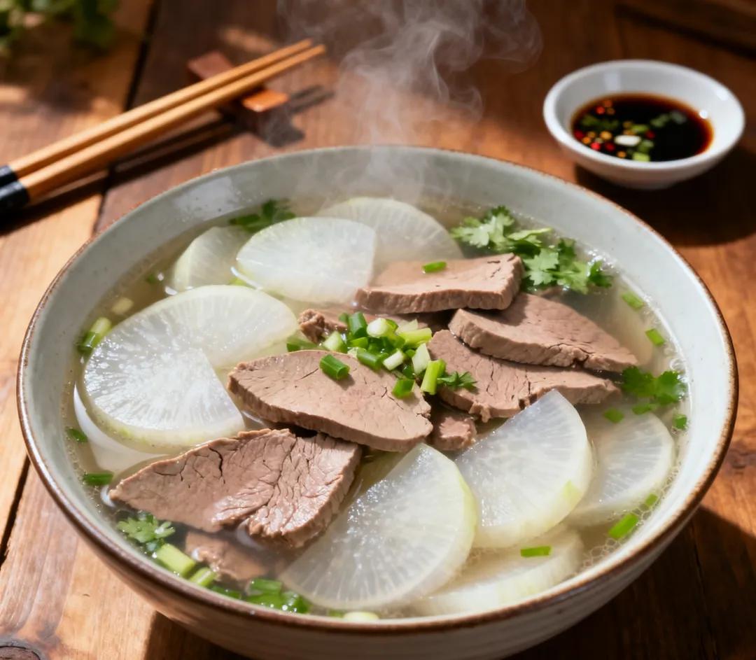 解腻又暖身的“冬季标配”。冬季的白萝卜水分足、膳食纤维丰富,能促进消化,减少猪肝的油腻感;