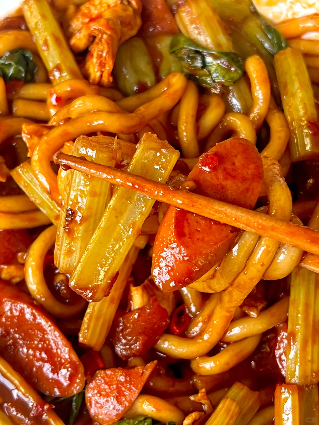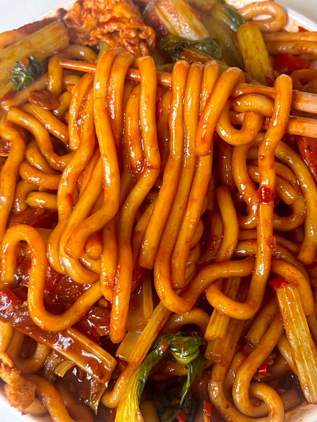 在家做出新疆炒米粉的味道!! 真的爆辣!!好过瘾啊啊 入口很Q弹裹满了酱汁~好香!! 🌟酱汁做法:一勺豆瓣酱 一勺甜面酱 一勺番茄酱 少许水 一勺辣椒粉 搅拌均匀 简单好吃赶紧去试试!
