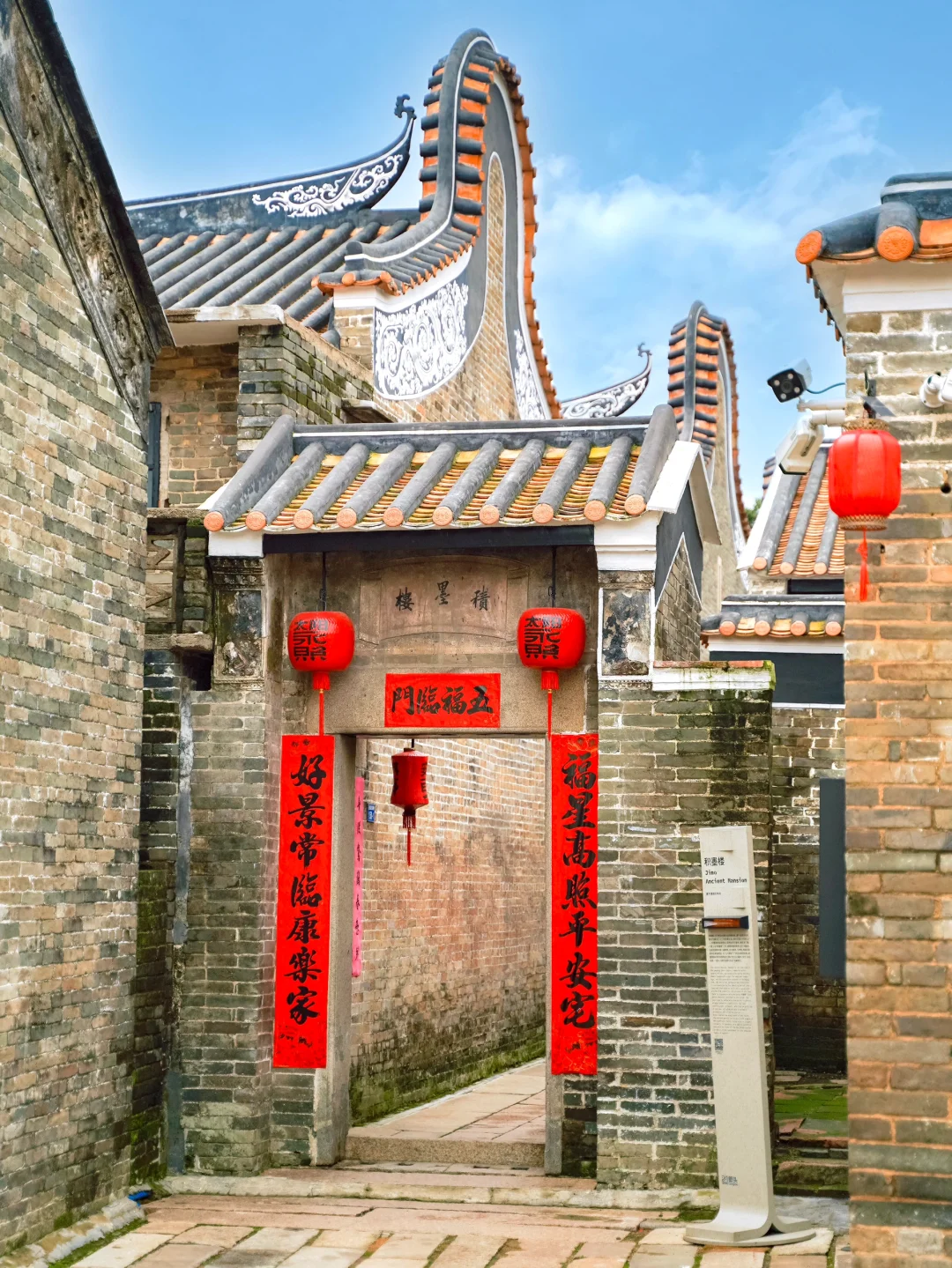 📍塱头古村700多年历史的岭南古村,保留了300多座明清青砖墙建筑,灰塑博古脊和黑色镬耳墙都是岭南建筑特色,典型的梳式格局每条巷子都是互通的,逛逛古巷偶遇转角的咖啡店,还能从店内的楼梯走上房顶的,特别有意思。