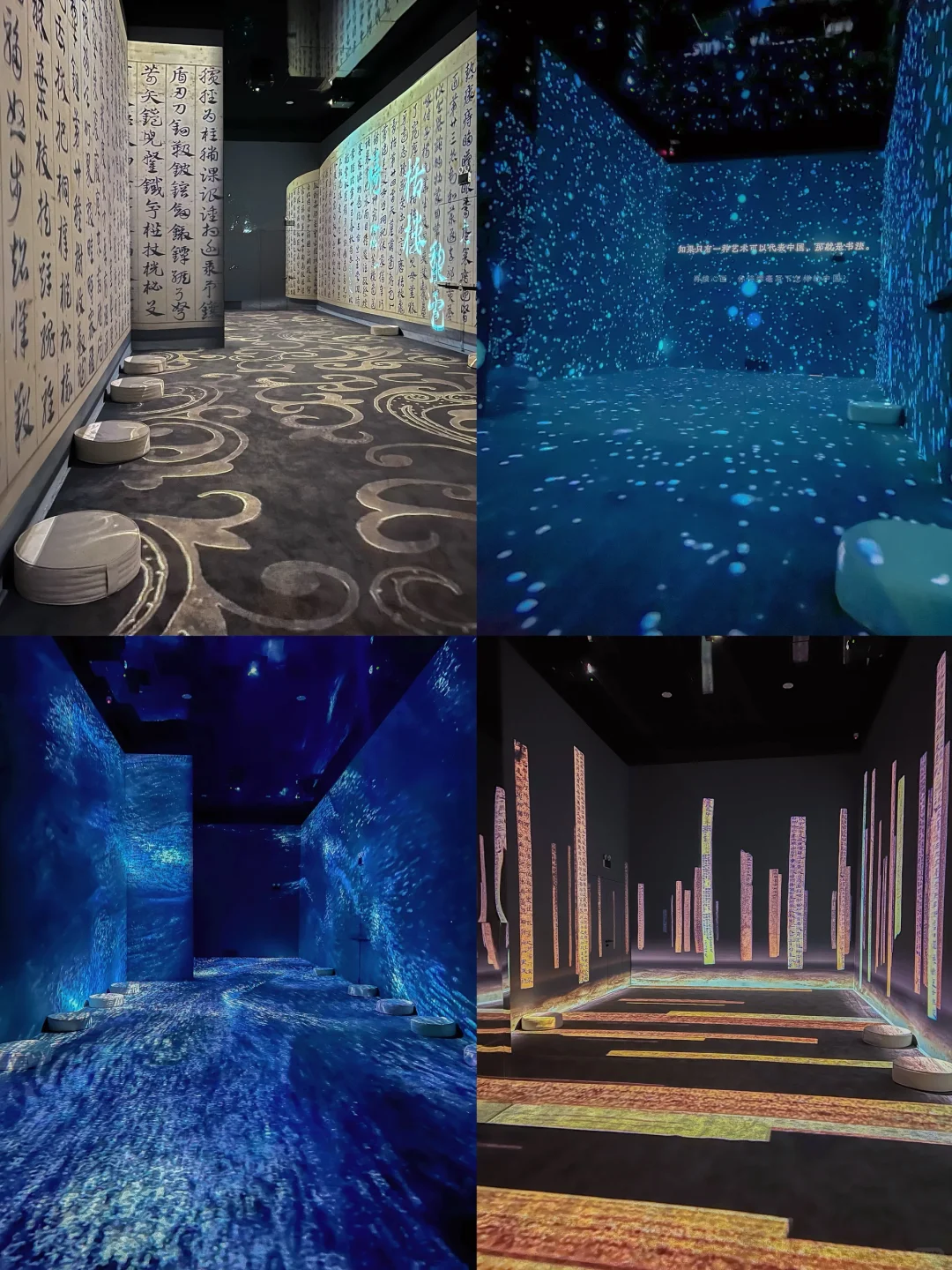 📍墨光宝盒’心画中国’光影艺术展,沉浸式体验光影和声效的多媒体放映厅,坐在里面20分钟去感受32位书法家的书法技艺,里面的光影效果唯美,体验感真的好棒。