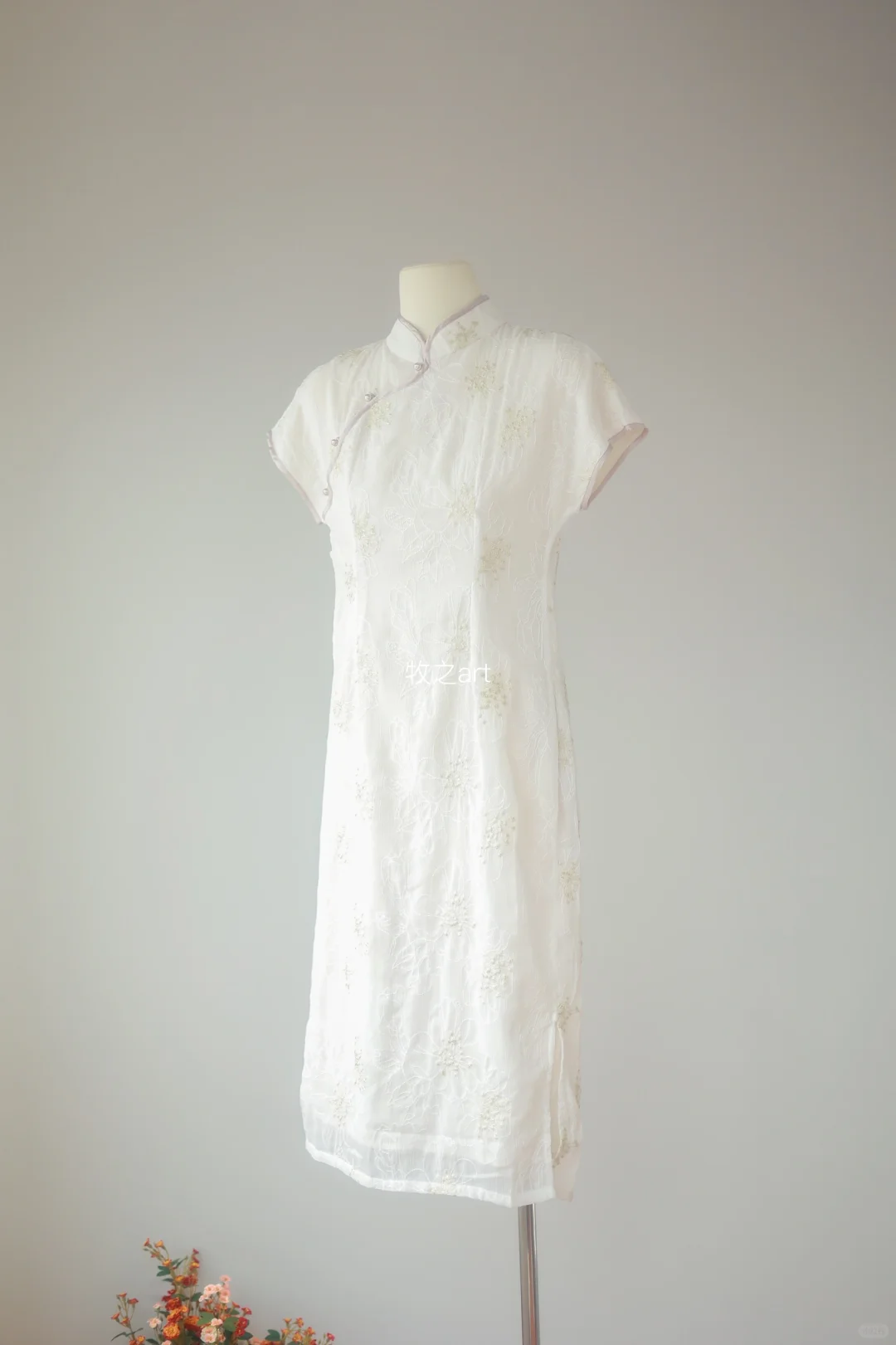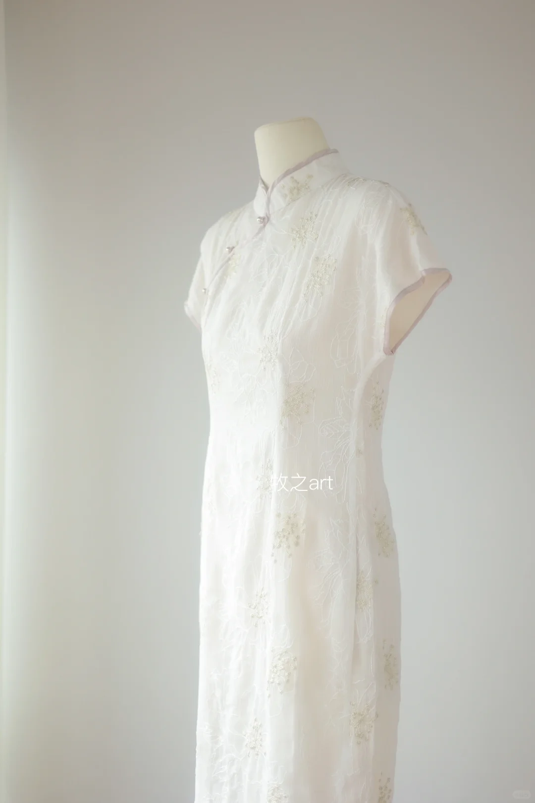 这款面料的绣花很精美,气质 其实面料越薄,绣花越难做 这批面料的绣花特别平整,很难得~ 3️⃣码/合适的尺码穿着才舒服, 面料没有弹力,并且版型偏修身,尽量对照身材维度参考尺码表哦~ 富有层次的绣面料国风韵味 -