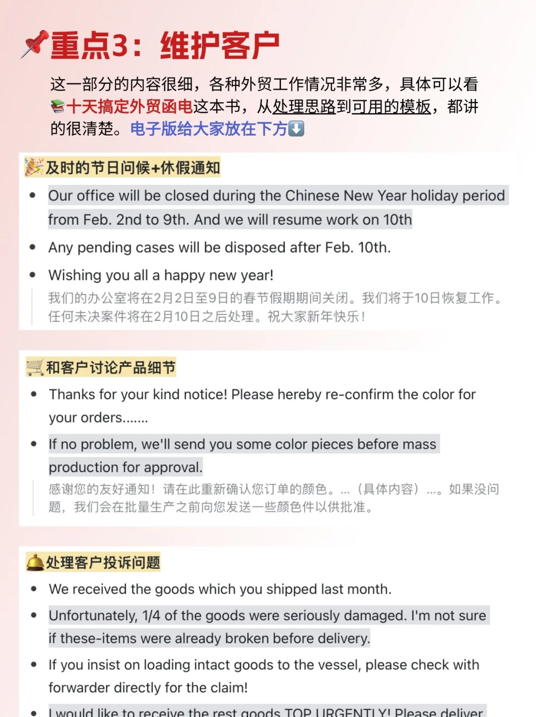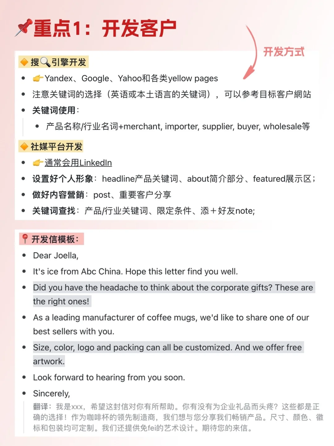 做外贸第1步:先给外贸祛媚!!! 不过是把产品卖给老外的事儿,真没那么复杂。 - 顶多需要你做好规划,先选好做什么产品,运气好的话进一家好公司,会进步的很快。 至于技能提升方面的重点,我也给大家罗列出来了。 没有思路的小白可以先看一看,思考自己的薄弱点是开发客户,还是背调?又或者是跟进客户?维护客户?然后再去逐一突破。