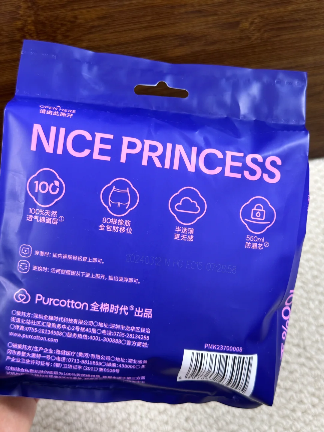 用空了才来说…… 奈丝公主安睡裤也太适合夏天了吧 材质巨优秀,100%全棉直接写在包装上! 棉花透气性超好,夏天穿进被窝睡觉都不闷~ 版型跟内裤差不多,贴身无感~ 而且干爽科技也是贼6🐂 液体能很快速的吸收到底下 表面依旧是干干爽爽的!!! 自从用了它之后 太爽了…..真的会停不下来 每次姨妈期我也能安安稳稳的睡个好觉了!! - 这次五一旅游出行都带着它 经期晚上当内裤穿,随用随抛贼省事!! 等618再囤一波!!