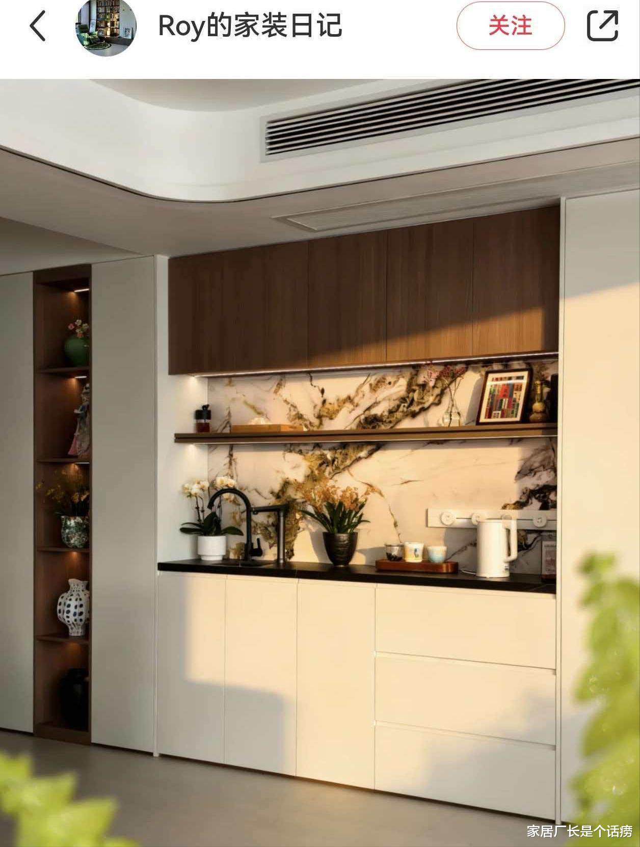 上下封板尽量做极窄的,或者直接做隐藏式,两侧不需要硬上无收口,那对墙体要求很高,用18 mm板就够了,千万别用5-8公分的宽收口(商家图容易),会让餐边柜的精致感瞬间消失,改都没法改。