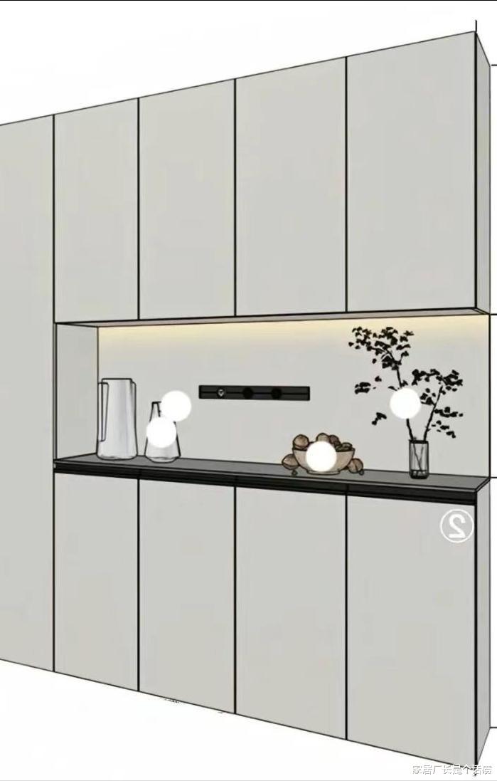 二、定制餐边柜,这些避坑要点!格局设计定好了,颜值的高低就看细节了,很多人餐边柜装完觉得丑,问题全出在这些细节上。