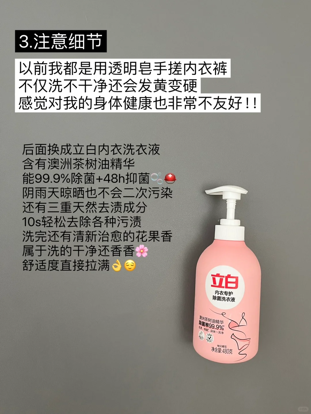 立白好用!我本来觉得无功无过的结果后面尝试了别家的才发现它洗得是很干净的…而且那段时间感觉内衣裤寿命都更长!都软软的