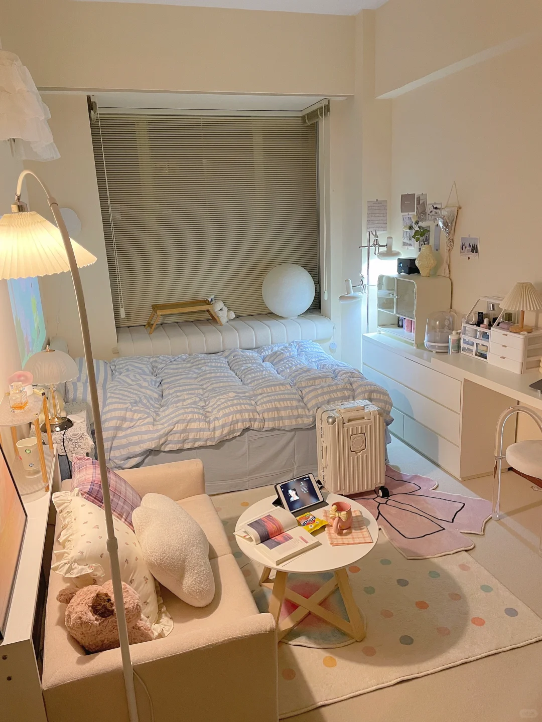 打造精致小窝卧室分享,超有爱的沙发定婚期,大床日常想念。温馨小窝,满满幸福感