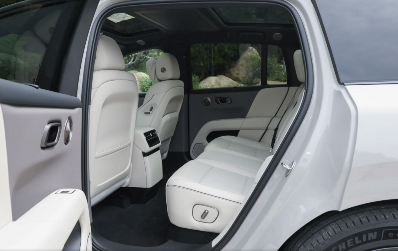而来到后排,理想i6是一台2+3五座布局的纯电SUV,同时在舒适性配置上,理想i6并没有标配“冰箱”和“彩电”,也算把选择权交给了用户。而且相比之下,其实对于五座车来讲,后排娱乐屏的存在感,或者是用户对于这项配置的需求并没有购买六座车用户的需求那么强烈。当然,如果你对这两项配置有一定的需求,可以自行选装,其中压缩机冷暖箱的选装价格为5000元,而后排21.4英寸的3K娱乐屏是与流媒体后视镜绑定,选装价格为10000元。