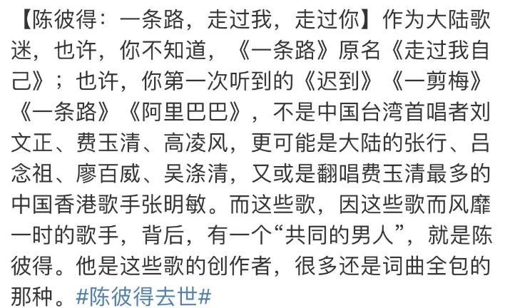 原创音乐人陈彼得于6月份去世时,吕念祖被观众短暂地记起来过,陈彼得创作的大热单曲《走过我自己》,他曾经翻唱过,同样引发了一阵翻唱潮。