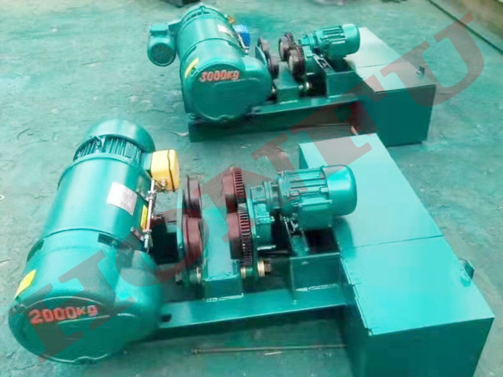 结构原理:采用两个平行排列的小直径卷筒,钢丝绳的两端分别缠绕其上。电机通常位于两卷筒之间或上方,实现同步驱动。