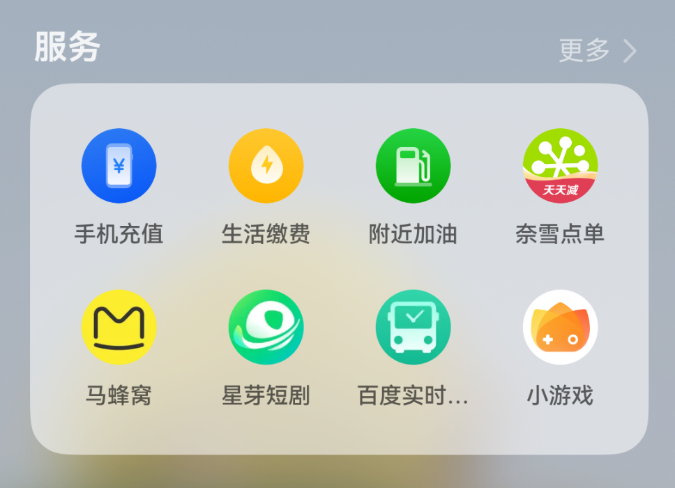 在候机室等待登机,或是落地后去酒店、去景点的路上,总有大把的碎片时间。这时候负一屏的“八宫格服务区”就可以帮我打发时间。我常备的是“马蜂窝”、“小游戏”和“星芽短剧”。