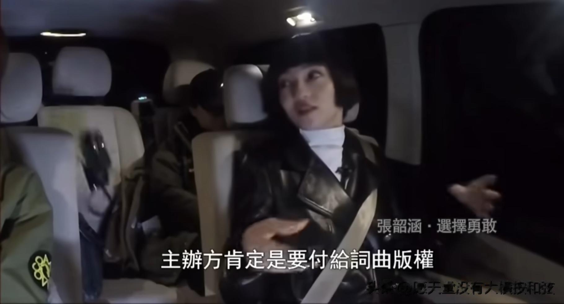 演唱会——演唱会的版权费还是比较低的,但就算很低也非常离谱——一般来说热歌的版权费在平均票房的4%。也就是说如果你整首演唱会全部都是翻唱曲目,那么这个价格会很夸张。版权拥有者和词曲作者明明什么事都没有做,但是就能躺着赚钱。这个价格普遍,张韶涵口述是:几万块一首。