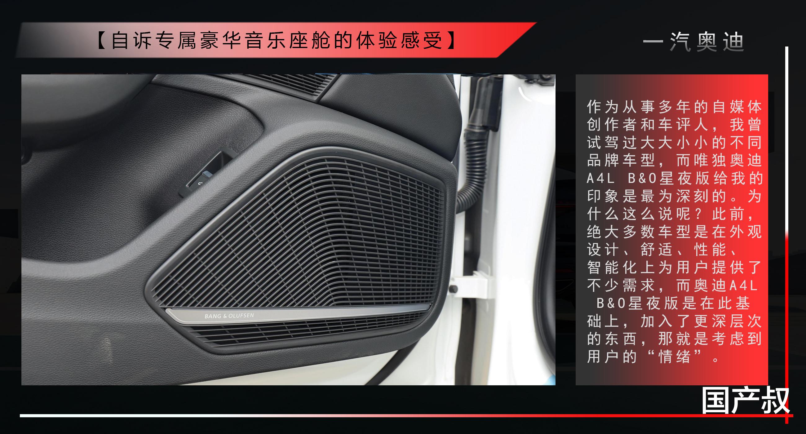 自诉奥迪A4L B&O星夜版专属豪华音乐座舱的体验感受