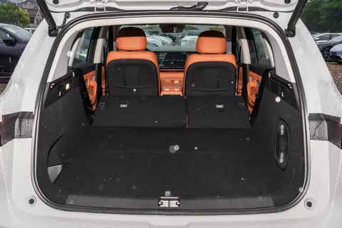 对于家庭用户来说,空间和舒适是绕不开的硬指标,零跑C10在这方面的表现让人满意。2825mm的轴距让得房率达到了66.8%,这意味着它把更多的空间留给了乘客和储物,而不是浪费在不必要的地方。我180cm的身高坐后排,膝盖离前排座椅还有两拳距离,头部空间也有一拳多,不会觉得压抑。上次同事聚会,四个大男人(体重都在150斤以上)挤后排也不会觉得挤,还能轻松跷二郎腿,这在中型SUV里相当少见。