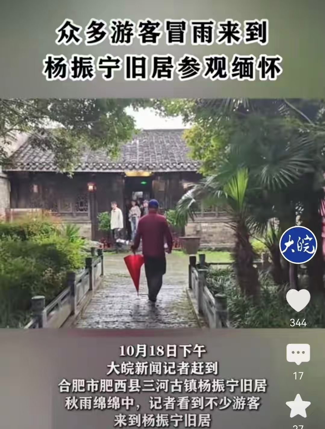 除了学校,杨振宁先生的旧居也有很多人去缅怀,冒着雨都人来人往。秋雨绵绵更显伤感,103岁逝世也算喜丧。希望杨振宁先生一路走好,在八宝山和邓稼先为邻后,继续讨论科研话题。