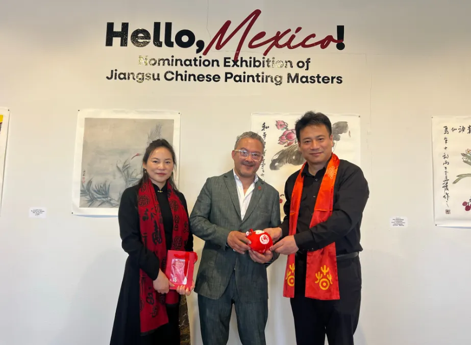 当地时间2月24日,“你好,墨西哥——江苏中国画名家提名展”在墨西哥墨西卡利美术馆正式启幕。中国驻蒂华纳总领事傅新蓉,中国画学会副秘书长、江苏省中国画学会会长翟优,江苏省中国画学会党支部书记、学术委员会委员张广才,常务理事周胜荣、樊蕾,理事张莉,下加州文化局副局长古铁雷斯,下加州文化局博物馆与画廊处处长福蒂斯,墨西卡利美术馆馆长埃斯皮诺萨,中墨友好促进会执行主席兼秘书长梁绮梅等中墨嘉宾及200余人以线上线下的形式出席开幕式,共赏东方艺术雅韵,共叙文明互鉴深情。本次展览以丹青为桥、以笔墨为媒,将中华传统书画精髓与水韵江苏的人文底蕴远渡重洋带到墨西哥,为中墨文化交流谱写了浓墨重彩的崭新篇章。