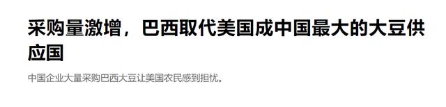别忘了,客户作为甲方是可以更换乙方的,你扰乱市场那我就不买你的大豆呗,现在,巴西已经取代美国成为中国最大的大豆供应国。