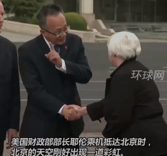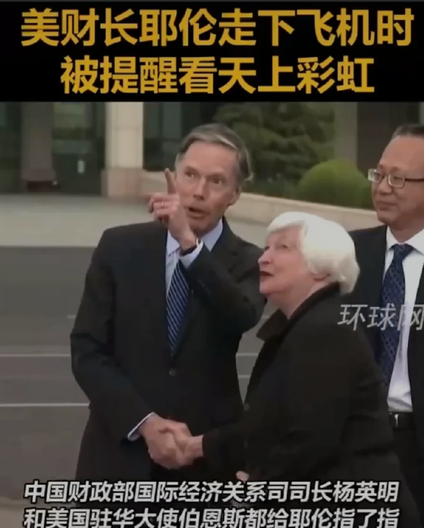 谜底揭晓了!美国财长耶伦今天下午抵达北京的时候,为什么所有人都指着天空让她看?