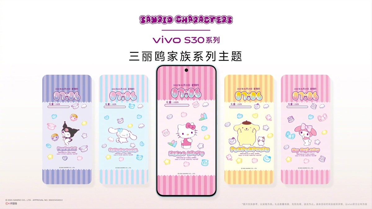 vivo S30系列还与超火的三丽鸥家族联名合作,开启了一场科技与时尚的跨界对话。凯蒂猫、酷洛米等经典IP形象与手机配色的深度融合,黄黑、粉黑撞色的大胆设计,打破了传统手机的单调形象,成为年轻用户表达个性的时尚单品。
