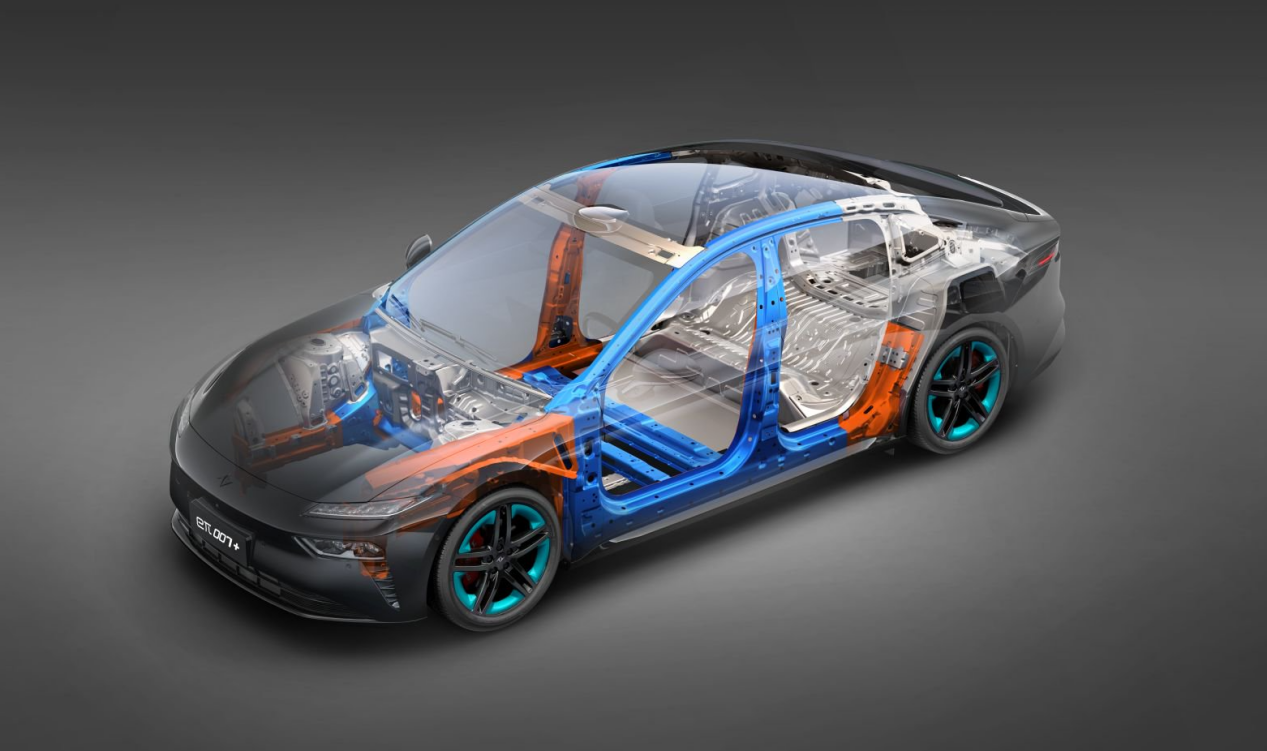 安全是品质的底线,eπ007+拥有30+项主被动安全配置。整车采用高强度笼式车身,关键部位使用1500MPa热成型钢,荣获C-NCAP五星安全及“中国十佳车身”认证。针对用户关心的电池安全问题,马赫电池拥有“热电分离设计+应急冷却系统”双保险机制,同时配合蜂窝铝合金框架与1200MPa超高强度钢装甲,打造出多维碰撞防护体系。