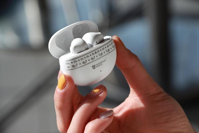 接下来我们来看一下整体外观,充电盒就像是一块被精心打磨过的鹅卵石,中间围绕着一些腰果花图案,这个图案拿捏的非常好,不会让人觉得喧宾夺主,简约而不繁琐。