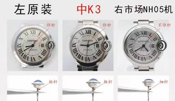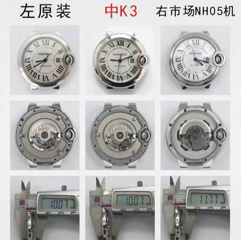 这款33mm蓝气球,原版的厚度是10.7mm,3k厂采用机芯076(2671机)与正品一致也是10.7mm。市场NH05机厚度11.7mm比正品厚1mm左右。
