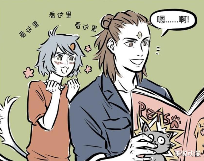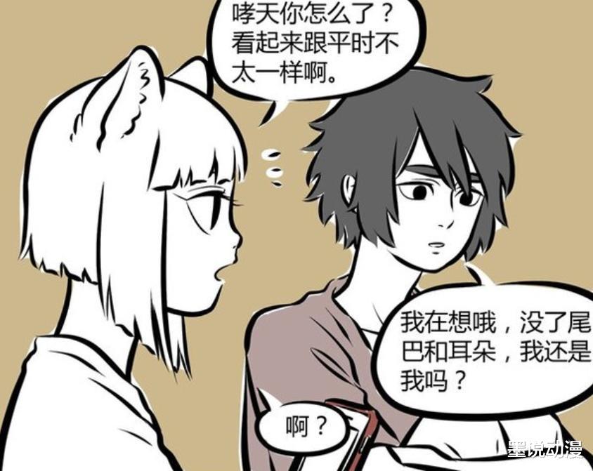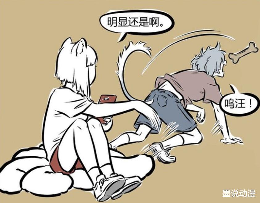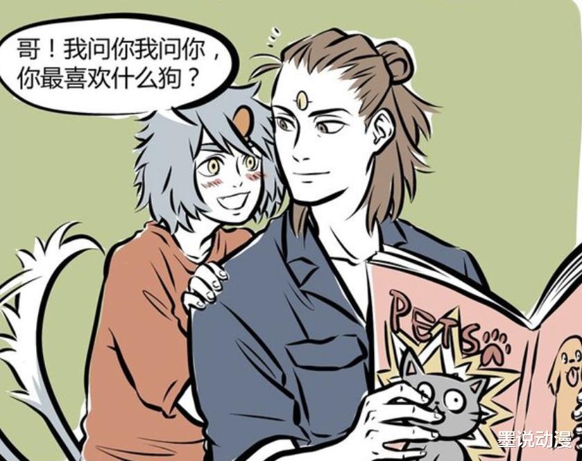 《非人哉》漫画版中,都知道哮天最在乎的人是杨戬。有那么一次,哮天问杨戬最喜欢的狗是哪种,从杨戬的反应来看,并不是哮天。哮天在那之后心情低落,还换了形象。在自我怀疑之后,被九月轻松拿捏。