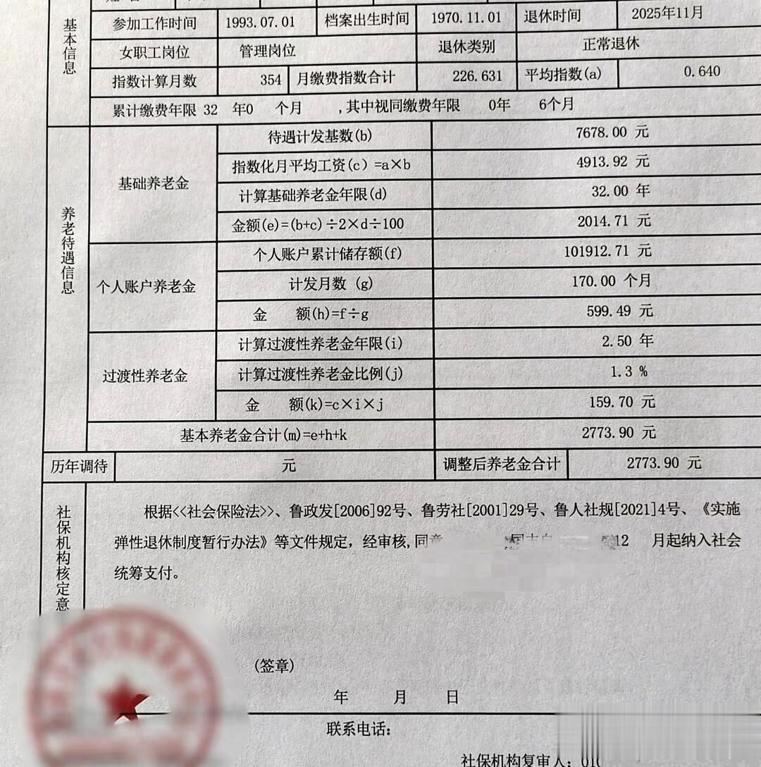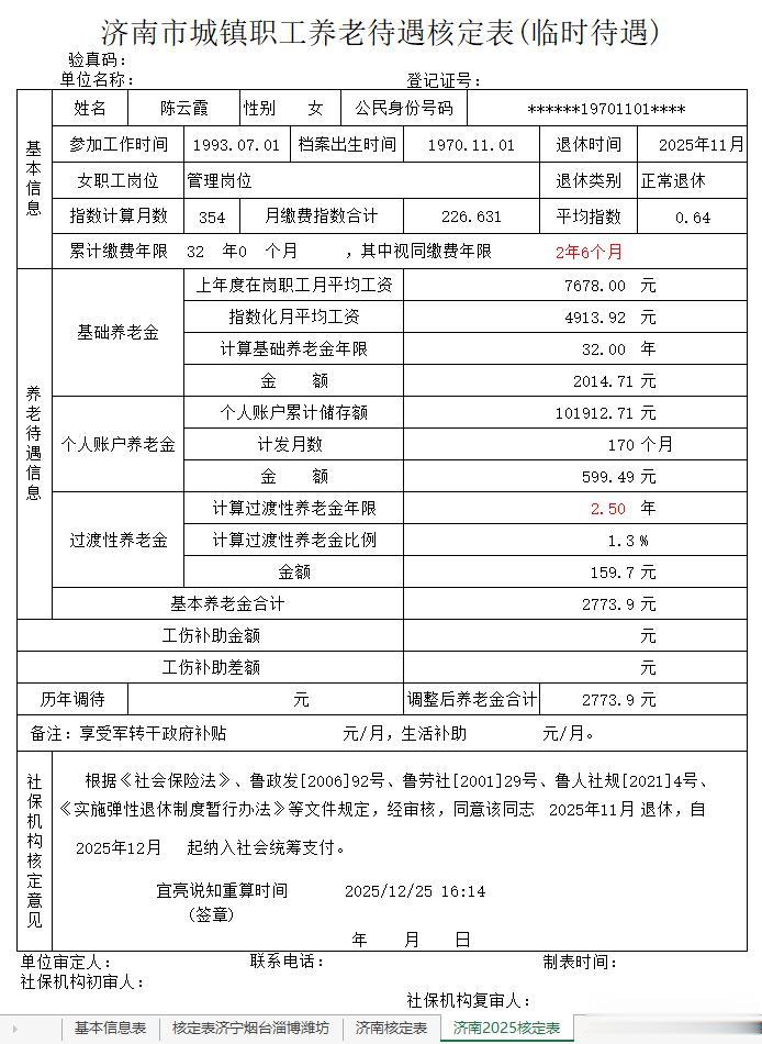 4、当然:以上只是陈女士的预发养老金,现在已是年底,山东省2025年的基本养老金待遇计发基数已经公布为7831元,重新核准的实际养老金也可增加43.32元,她的养老金将达到2817.22元.