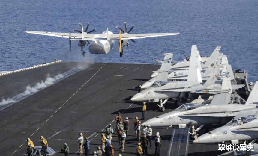 2016年3月18日,地中海,美国“艾森豪威尔”号航母正在执行例行飞行作业。一架26吨重的E-2C“鹰眼”预警机完成巡逻任务,准备着舰。