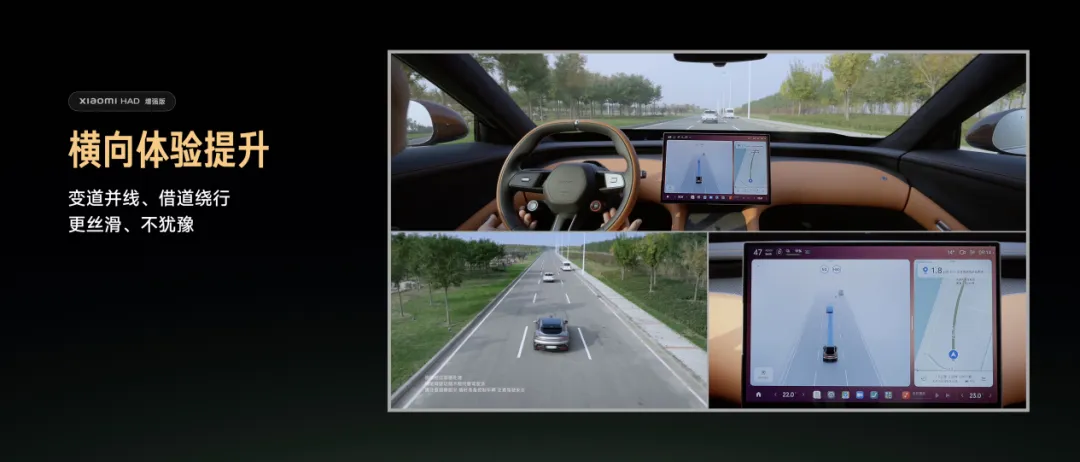 多场景的综合表现更成熟、更可靠。从高速公路的流畅变道,到城市道路的灵活穿行,再到上下地库、进出小区等细微场景,强化学习加持下的小米辅助驾驶系统在各个场景间的表现更加成熟稳健。这些能力的全面提升,让Xiaomi HAD 增强版在面对复杂多变的真实路况时,展现出更加成熟、稳健的驾驶表现,为用户带来真正意义上的安心驾乘体验。全域安心体验:行车、泊车到安全辅助全面守护,迈向更安心的出行未来通过「强化学习+世界模型」的深度应用,Xiaomi HAD 增强版在纵向控制、横向决策与路径选择三大行车核心能力上实现了显著提升,让辅助驾驶的体验更加细腻、可靠。这不仅是技术的进步,更是出行体验的一次质变。此外,广州车展发布的Xiaomi HAD 增强版 会跟随Xiaomi HyperOS 1.11 系列通过OTA向用户陆续推送。HyperOS 1.11 系列除了行车能力的大幅增强,还包含安全辅助的多场景安心感提升。安全辅助功能新增了紧急转向辅助AES 与 前向低速防碰撞辅助L-AEB / 后向低速防碰撞辅助R-AEB 技术能力,可以提供更多方向、更广速域、更全目标、更多场景的防碰撞辅助机制,保障行车安全。Xiaomi HAD 增强版&安全辅助功能将在广州车展后陆续向用户推送。辅助驾驶的进化之路仍在继续,而每一次技术突破,最终都将转化为用户手中更安心、更从容的驾驶体验。最后,在享受技术进步的同时,我们也要特别提醒:辅助驾驶无法替代人类驾驶员,现阶段辅助驾驶依然还是一个辅助功能,容易受很多因素的干扰,不要相信「怎么开都撞不了」的夸大宣传,驾驶时仍需时刻保持专注,在必要时及时控制车辆。小米将持续完善辅助驾驶技术,并与用户分享更多使用经验与技巧。