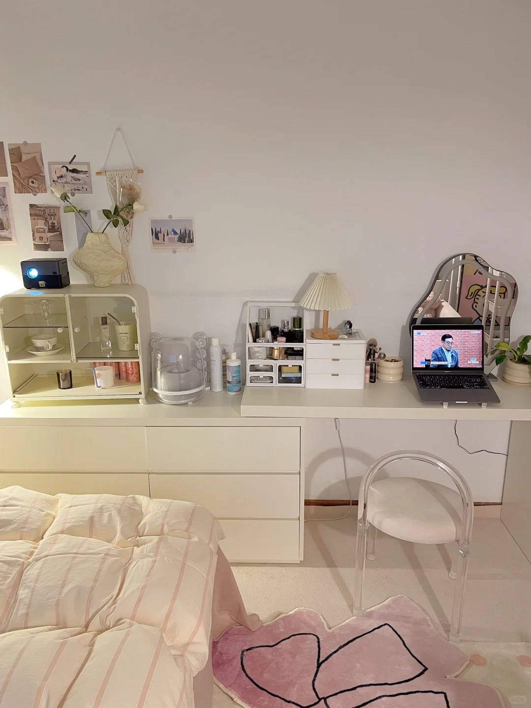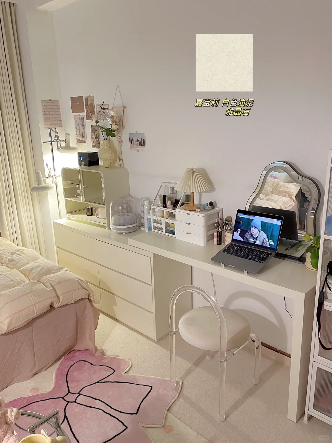 因为改造一下就好看多啦~ ✨关于硬装 租的时候就是一个空房子,墙面有些脱皮 所以就把墙面重新粉刷了一下 用的是嘉宝莉的雅晶石艺术涂料 刷好后的颜色我好喜欢,白色油泥好温柔~ 矿石的肌理看起来细腻自然,耐刮蹭,可擦洗 ✨关于软装 软装的色调就是跟着墙面搭的 基本上选择的都是奶白色家具 其次就是收纳性要好 最后确定自己的风格,按照风格搭配 就会是自己喜欢的样子啦