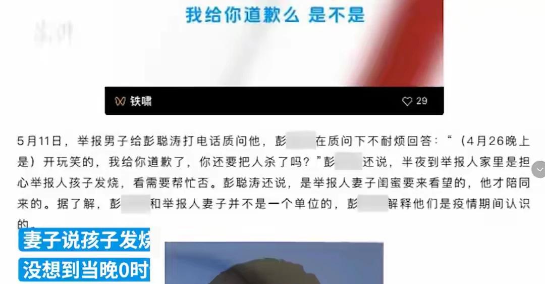 副镇长半夜喊女子KTV唱歌事件迎来反转?半夜登门拜访是担心女方孩子? 近日传的沸沸扬扬的,副镇长彭某喝酒到半夜,酒过三巡菜过五味,觉得缺点啥。摸起电话打给一女子,邀约去唱歌。人家女子孩子发烧,去不了,半夜了副镇长竟然登门拜访。 最近又爆出更多细节,副镇长登门时还带着一名女子。并且副镇长是已婚人士,当时称这名女子是他女朋友。在事后记者采访时,副镇长称半夜登门拜访是因为担心孩子病情,带着的女子也是女主的闺蜜。。。 信息量还真有点大啊!大家自己琢磨吧。你跟人家啥关系啊,那么的关心人家孩子,大半夜的去看望。。。