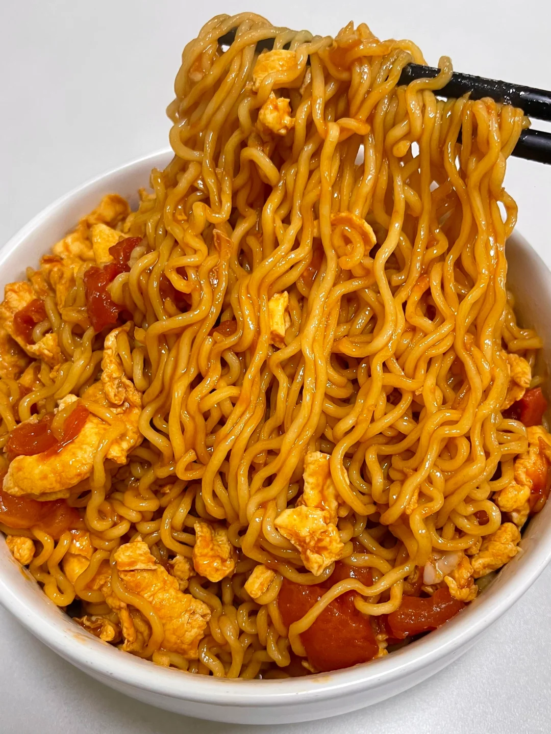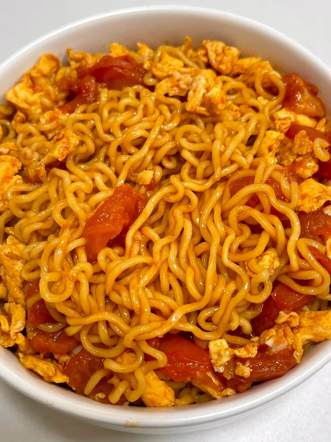 啊啊啊泡面这样做真的好吃到哭!! 每一根面条上都裹满了浓郁的茄汁~ 酸甜软烂的番茄 搭配劲道爽口的泡面 一口嗦下去真的巨巨巨满足! 爱吃番茄口的一定别错过这个吃法!!