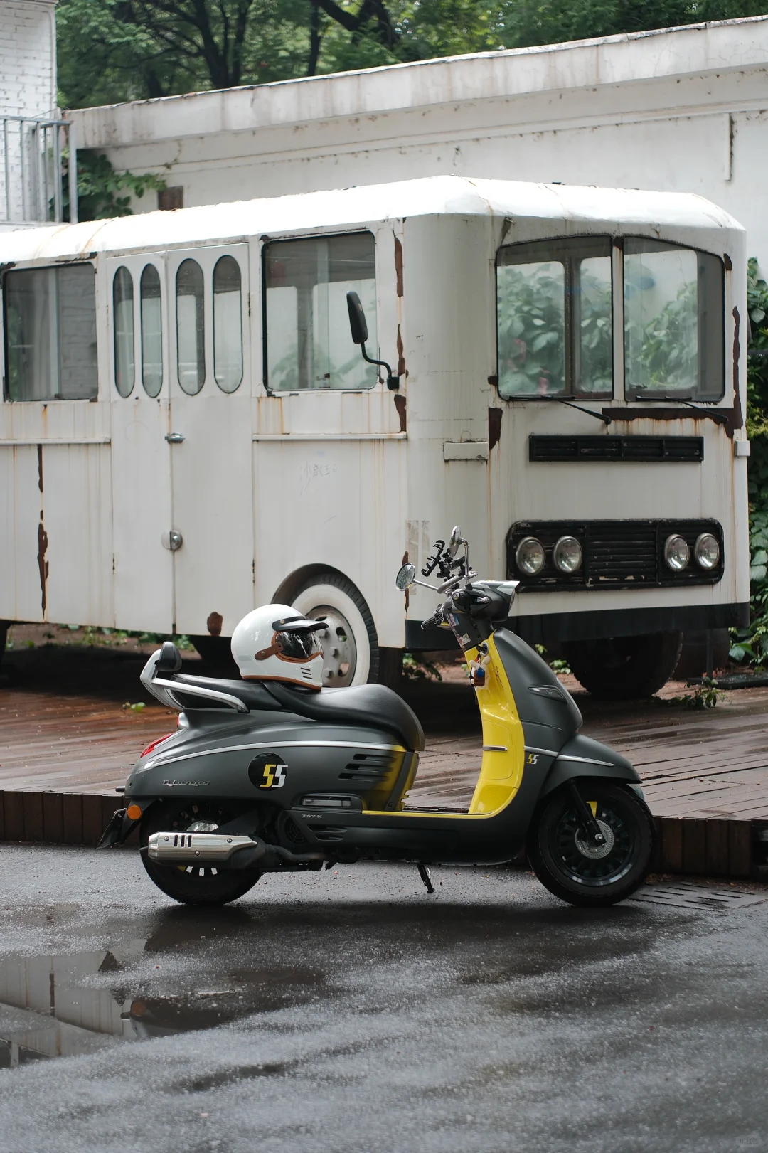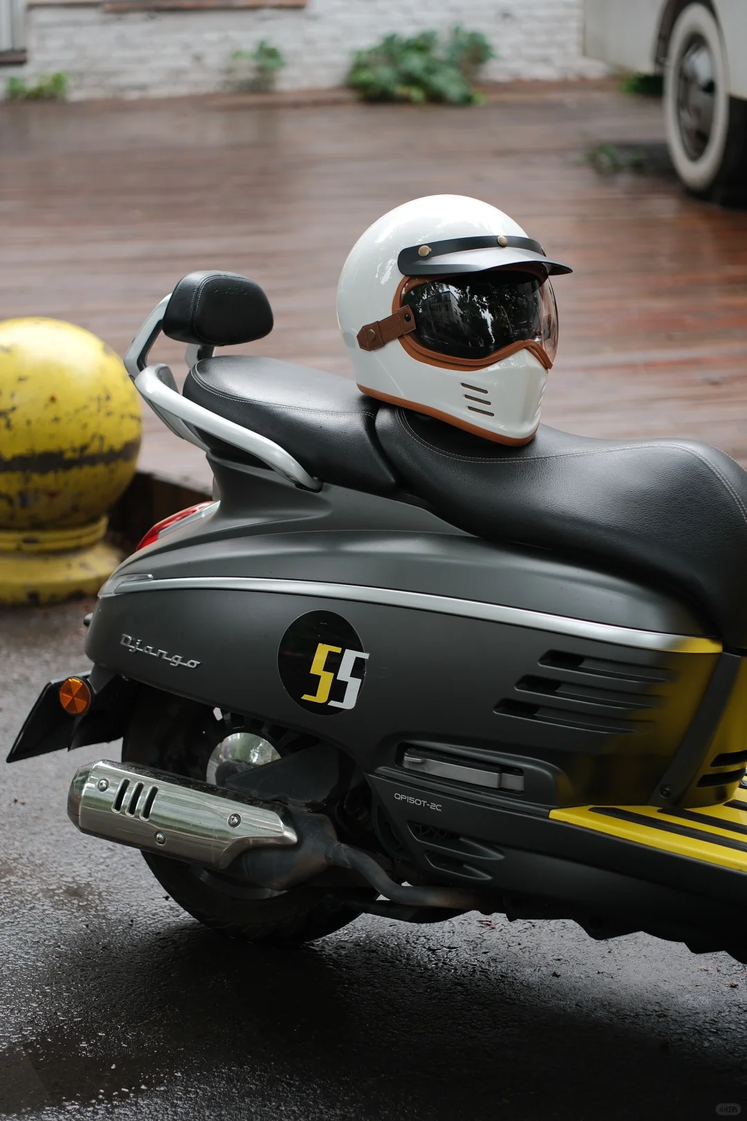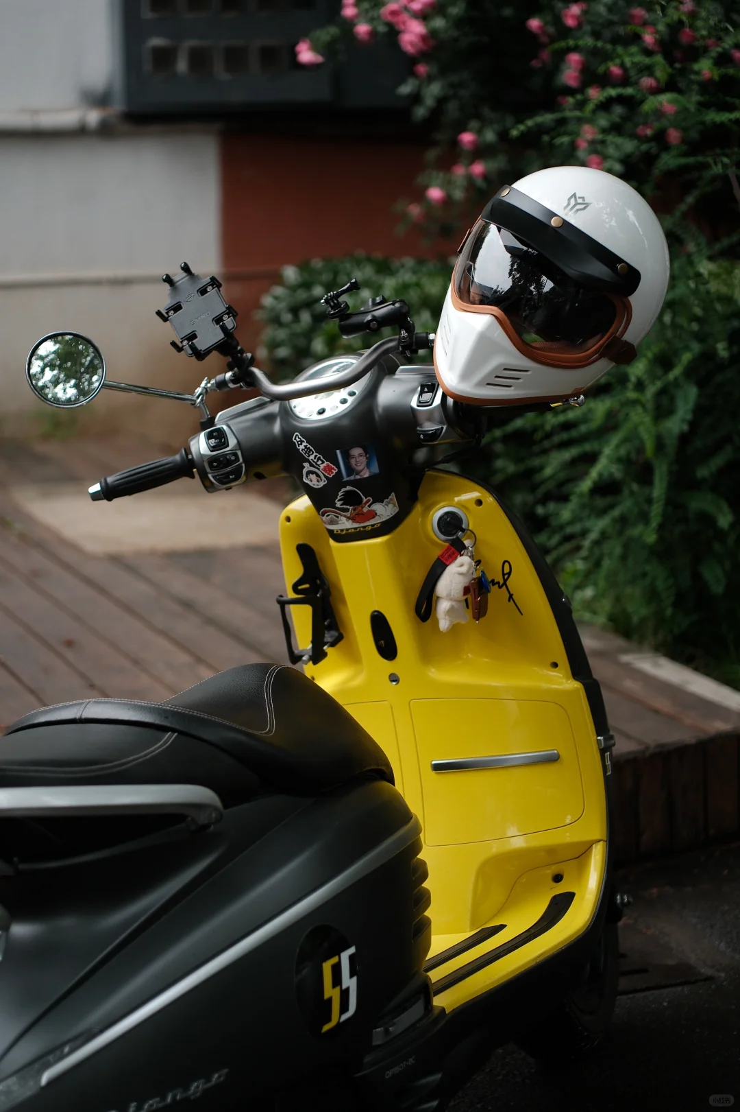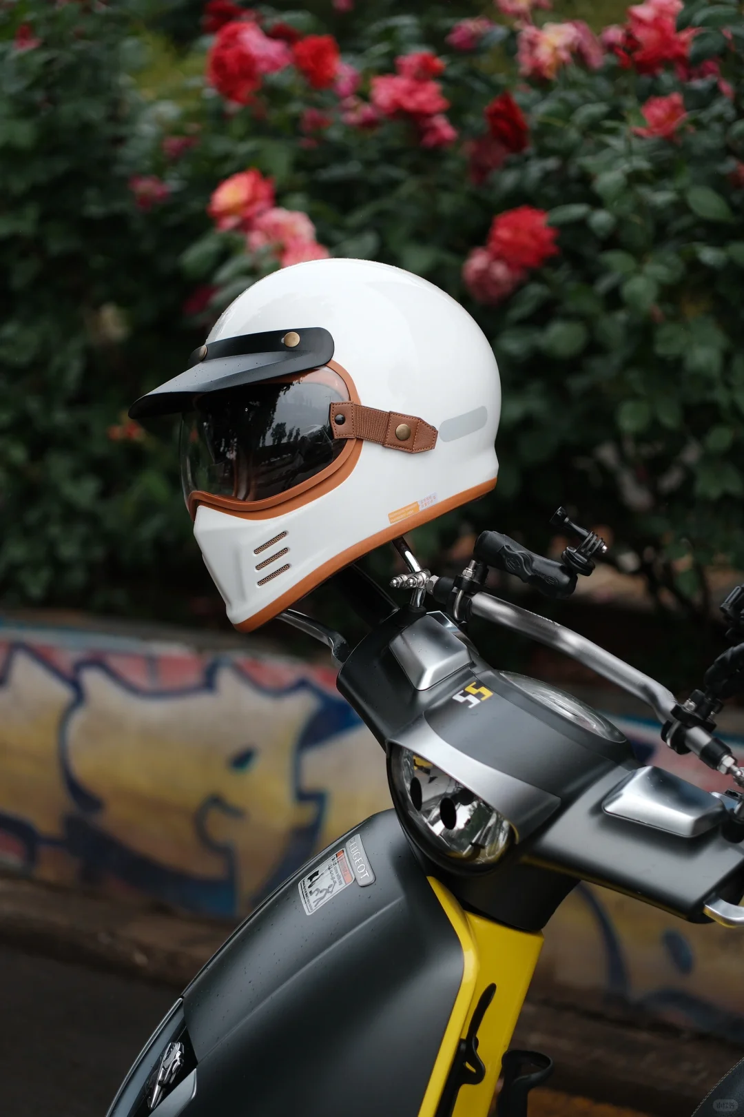 🛵初夏雨后天气凉爽,骑着心爱的小Django出门扫街真的很舒服,但安全最重要,头盔不能少。摩力行头盔是脸叔最新的骑行装备,复古陶瓷白,造型好看,跟姜戈很搭;内外双层镜片,可以根据骑行速度自行选择;还有蓝牙耳机槽很方便;关键是脸叔脸大头大,这是目前为止脸叔最舒服的一个全包头盔了!