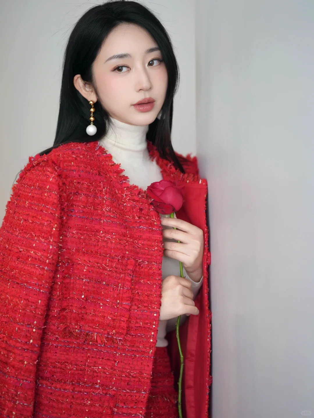 马上年底了~ 想要在公司年会上脱颖而出到底穿哪套啊? 🔴look1 大红色小香风套装 真的很喜庆 好适合节日穿哦 blingbling的水钻尖头高跟鞋👠 秒变大长腿🦵 ⚫️look2 女总裁范儿的黑色大衣穿搭 搭配水钻短靴 设计简约又不失高级感 我真的很爱! 气场不止一米八!