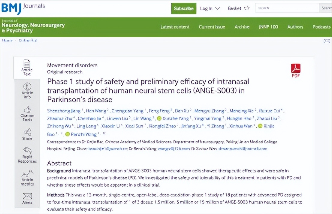 2024年,北京协和医院神经外科王任直、包新杰和神经科万新华团队联合开展的一项“利用人源神经干细胞治疗帕金森病的I期临床研究”取得突破性进展。