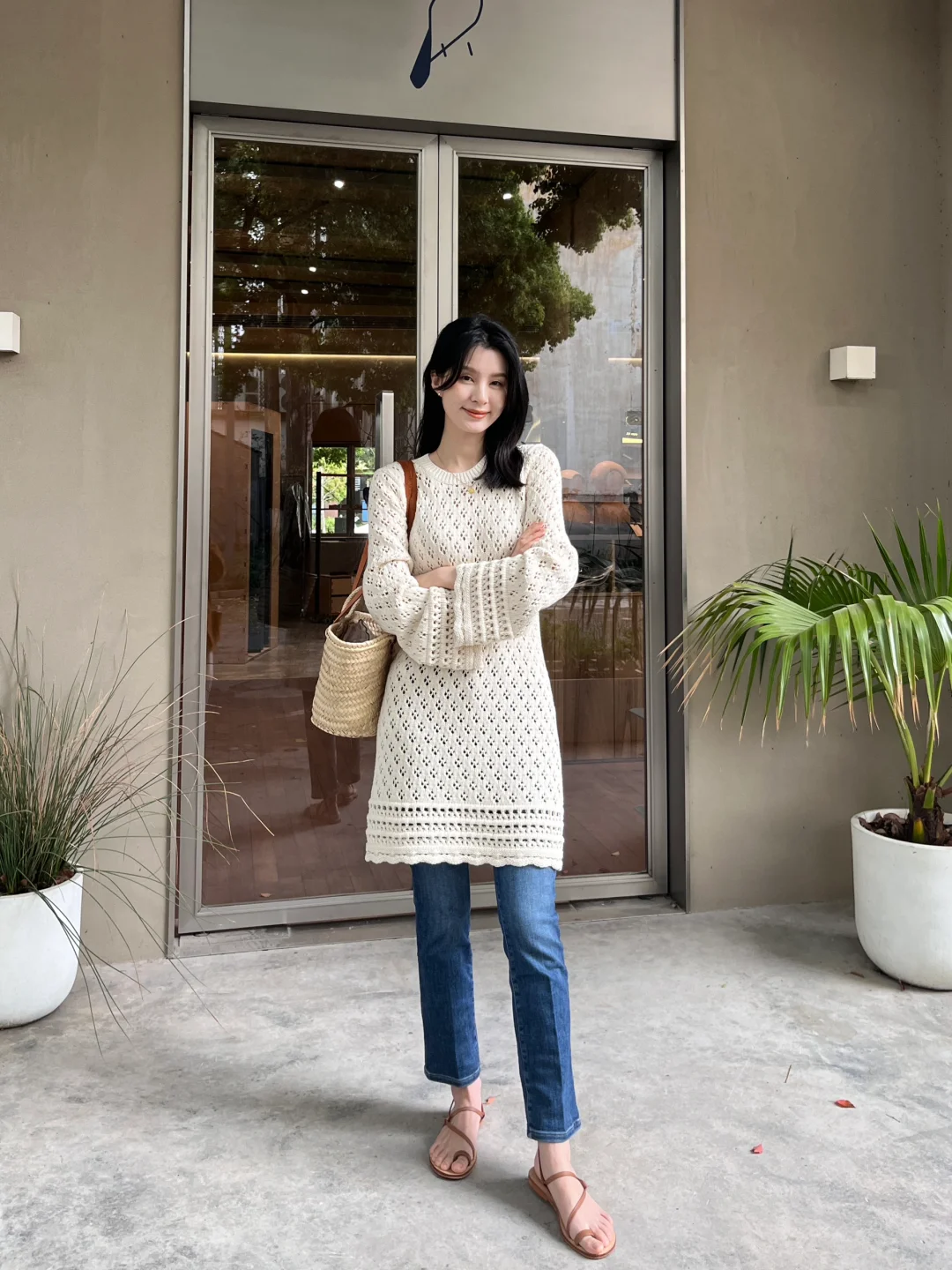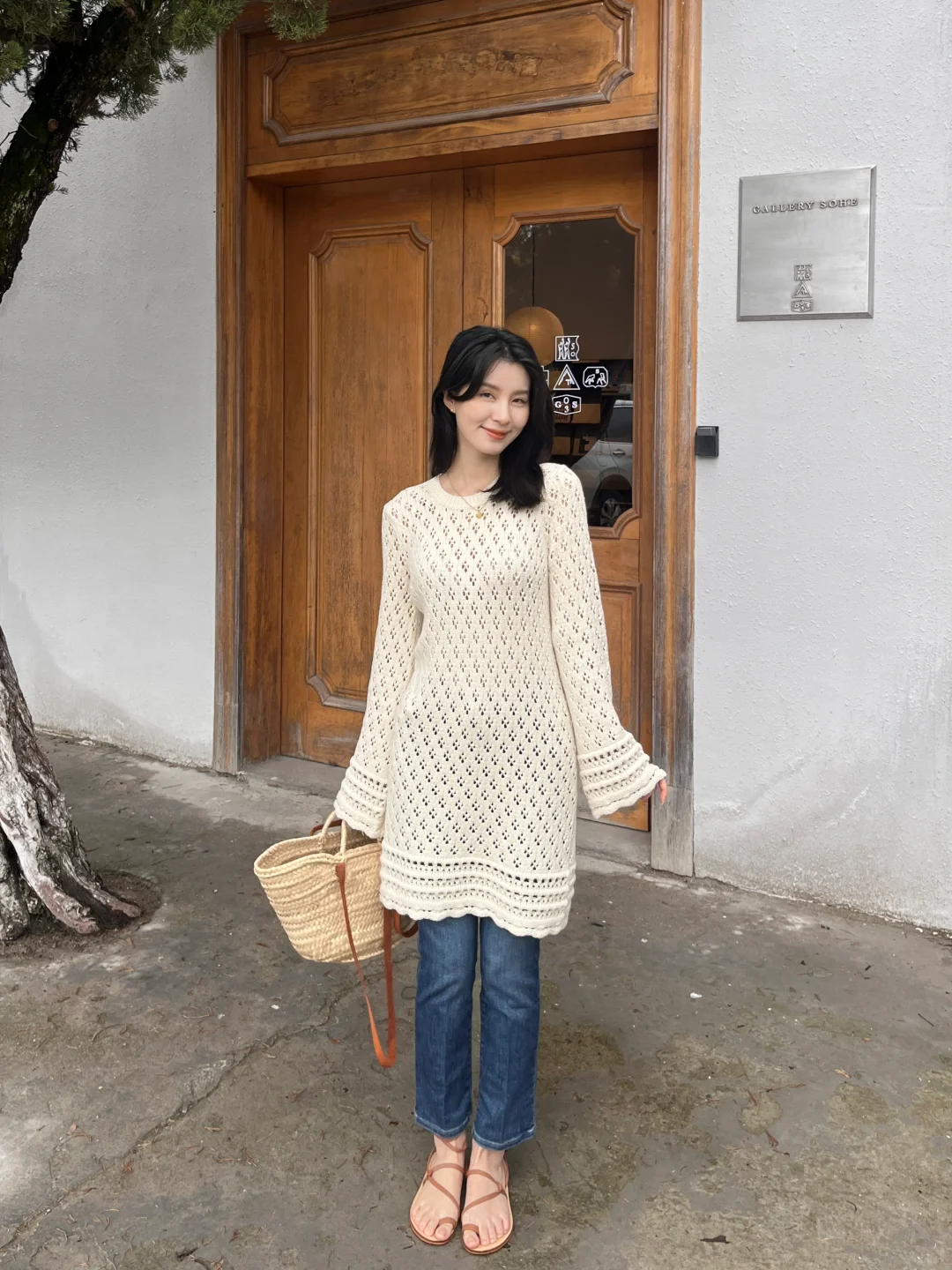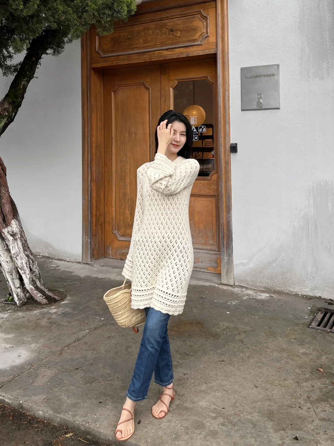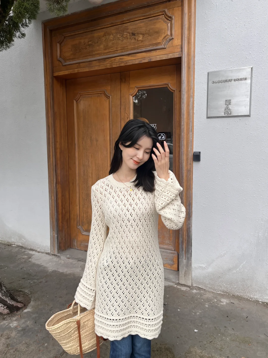 镂空钩花的连衣裙穿上有种春日度假风情的味道!配上近期找到的这条包裹性和舒适感非常好的牛仔裤,是很经典的搭配~