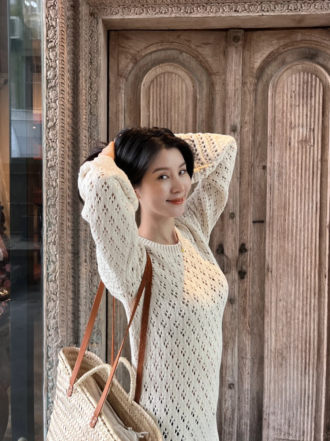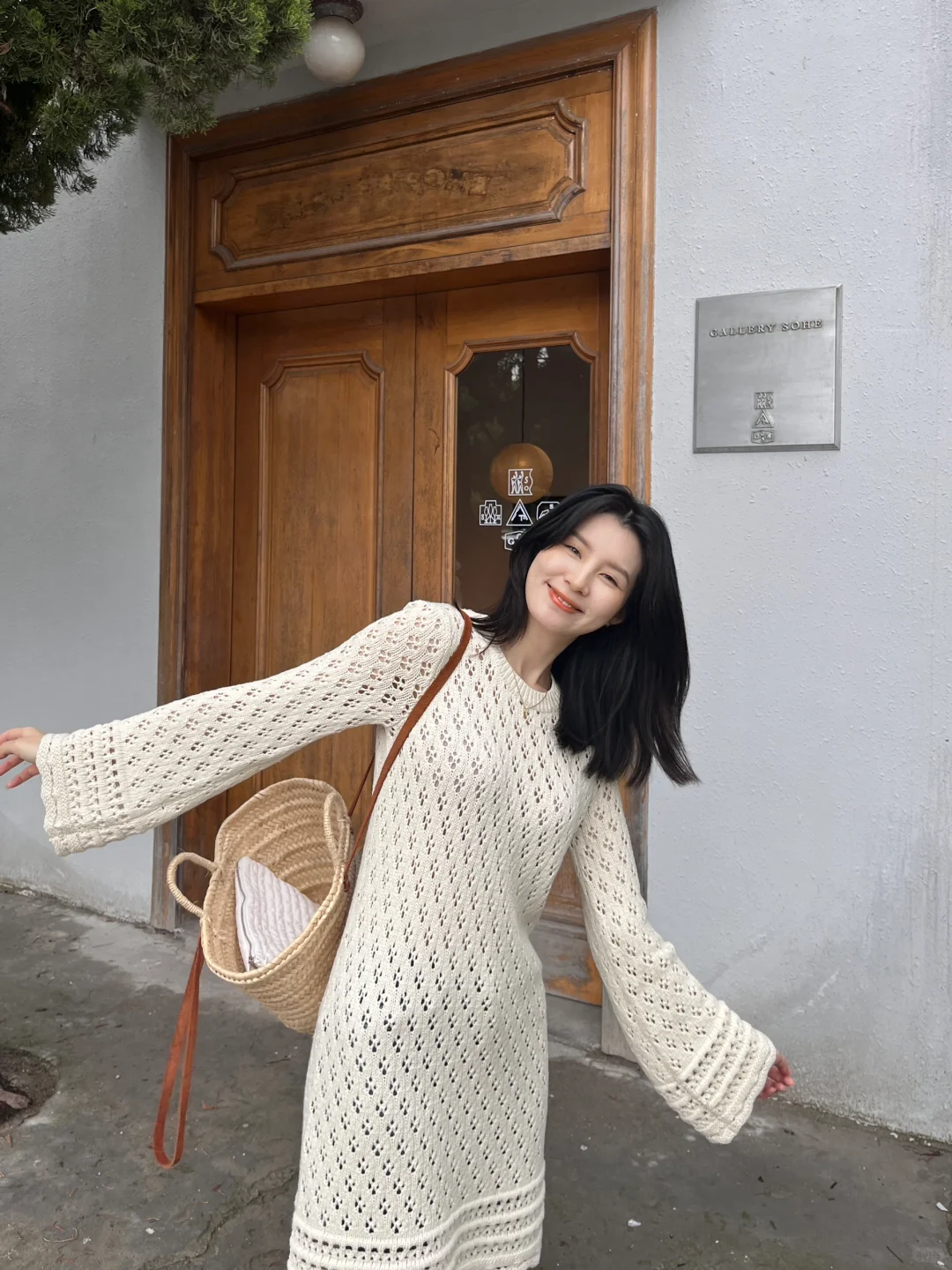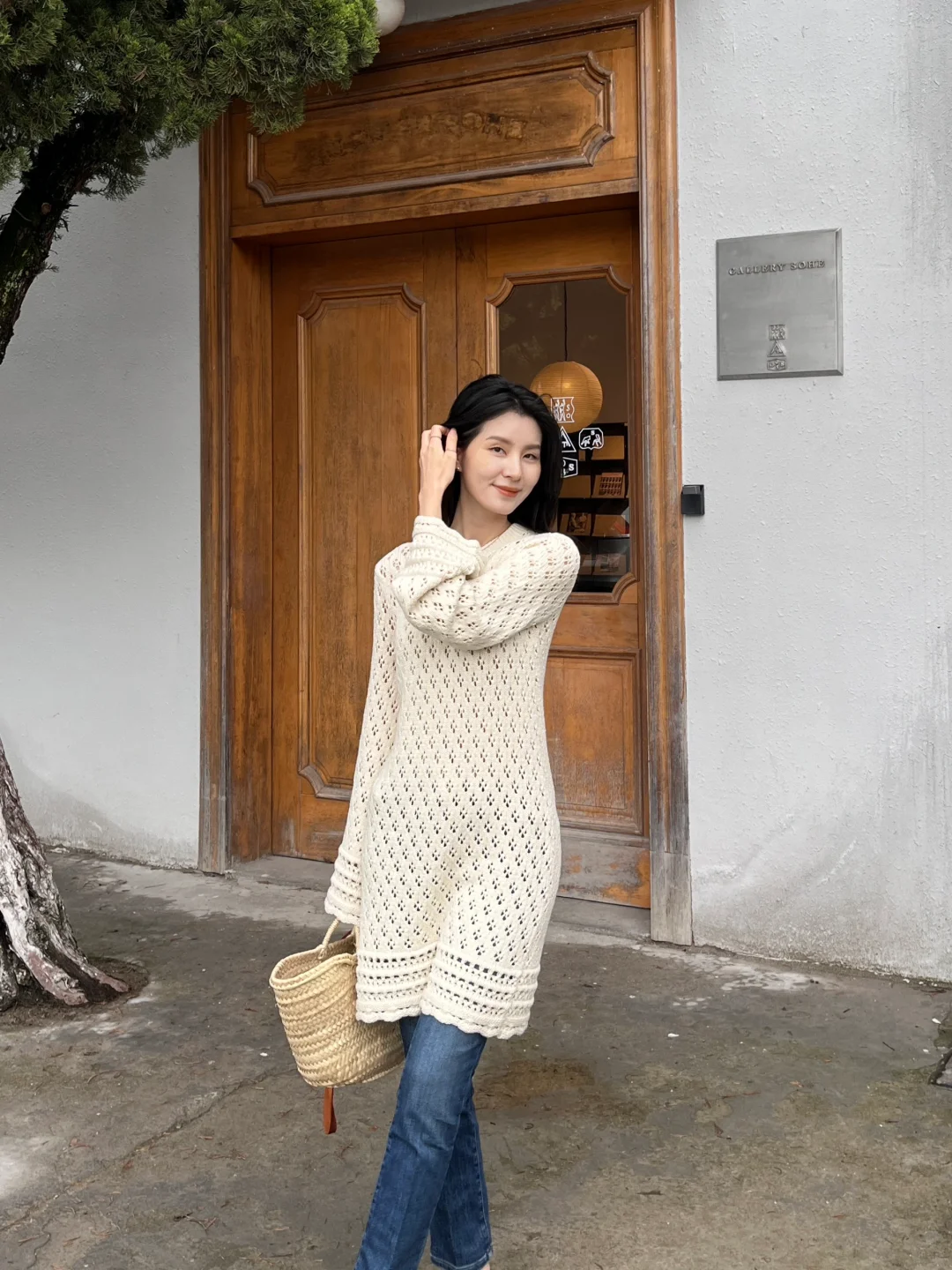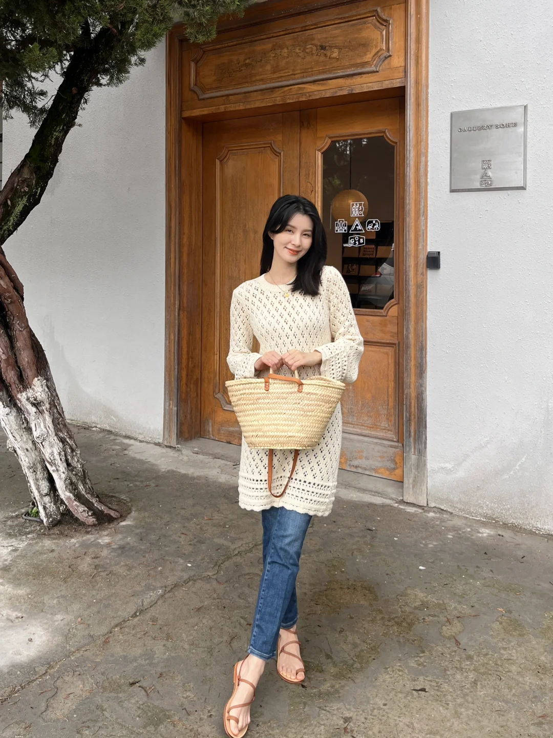 镂空钩花的连衣裙穿上有种春日度假风情的味道!配上近期找到的这条包裹性和舒适感非常好的牛仔裤,是很经典的搭配~