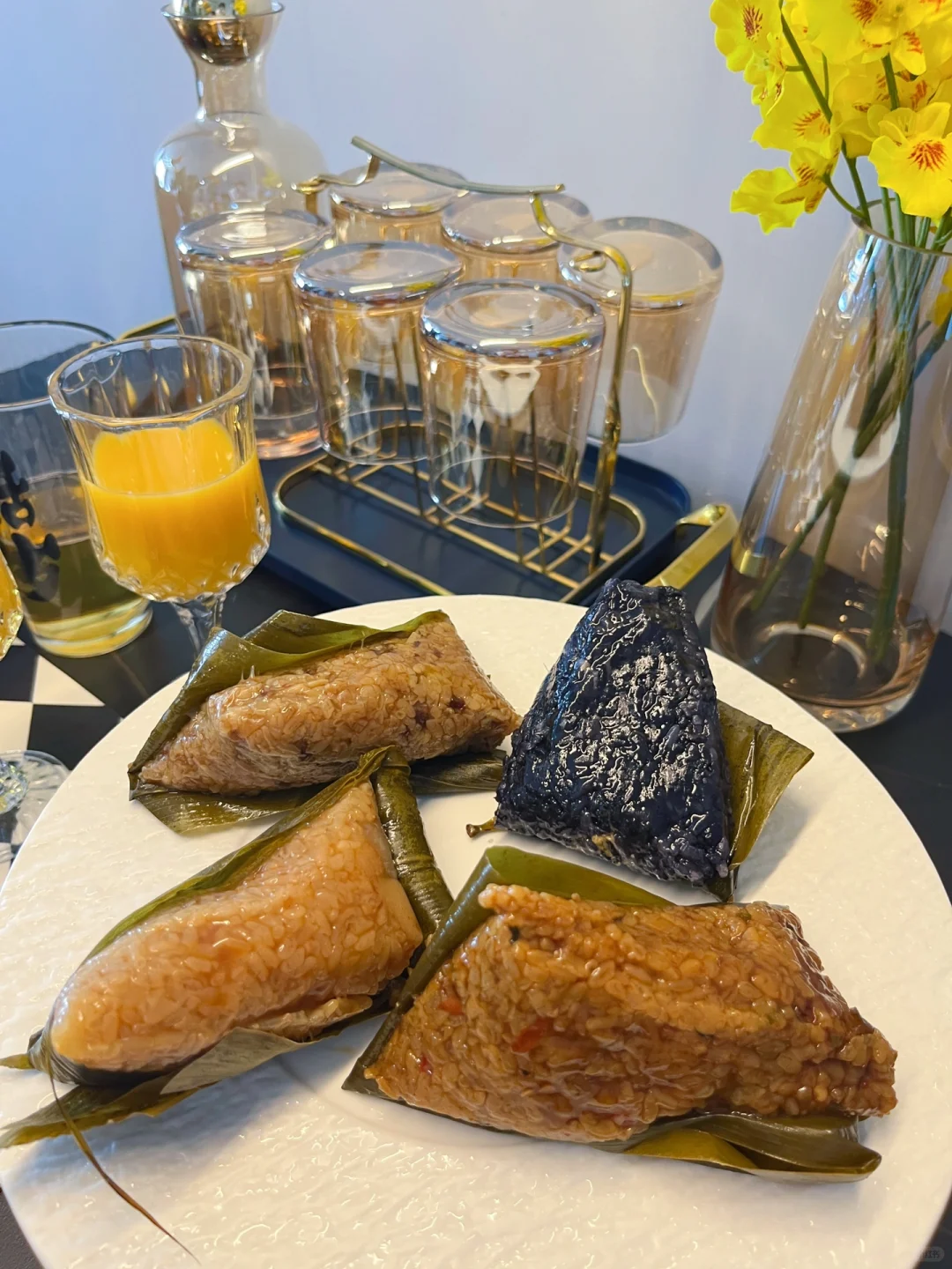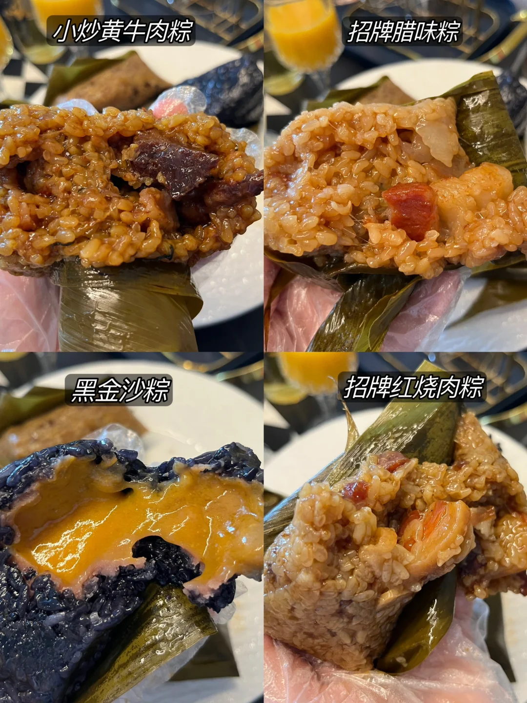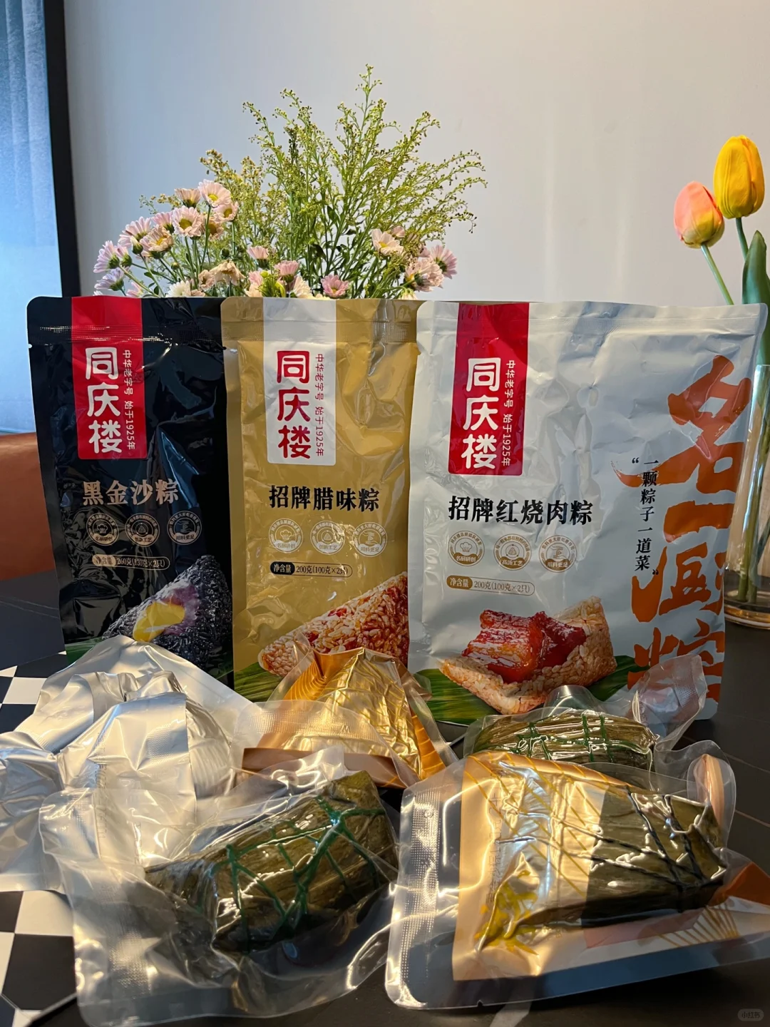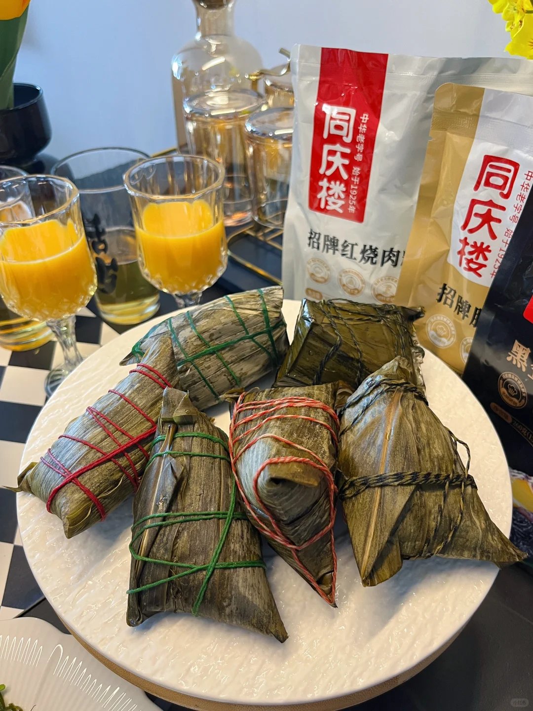 快到端午啦,提前安排一桌家宴感受端午的氛围~朋友还给我带了我z喜欢的同庆楼名厨粽,之前我家也是陆续买了好几次的,他家粽子是由大骨高汤熬制后再拌米,每一颗馅料饱满, 咸甜软糯而且每个口味都好吃,我自己呢尤其喜欢黑金沙粽,甜口的,乌米➕芋泥➕蛋黄流沙,咬一口真是满足呀!