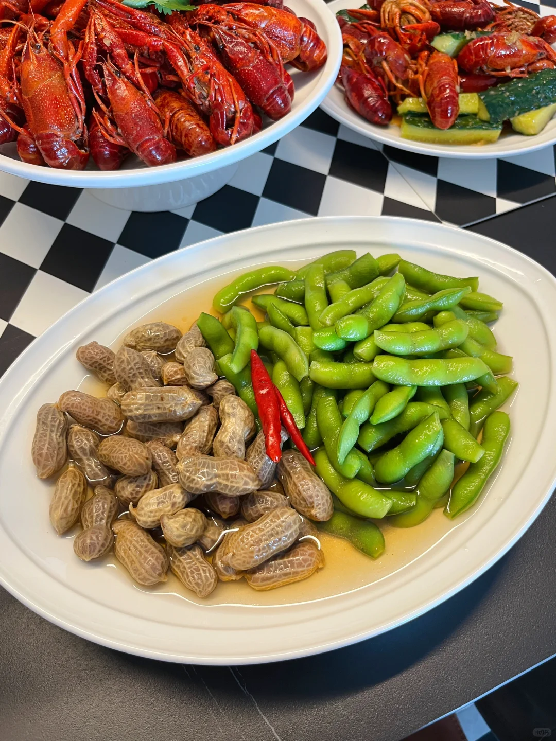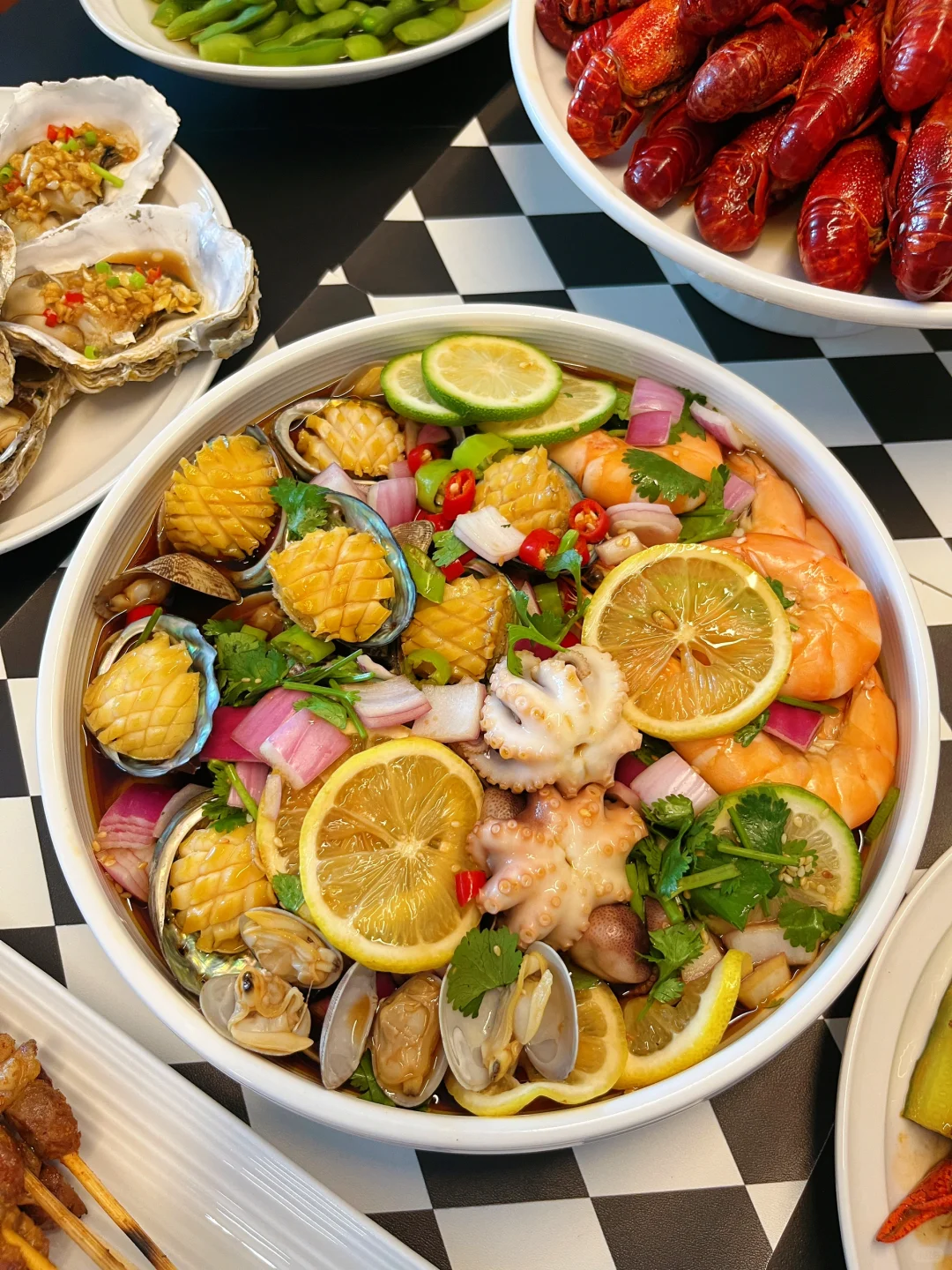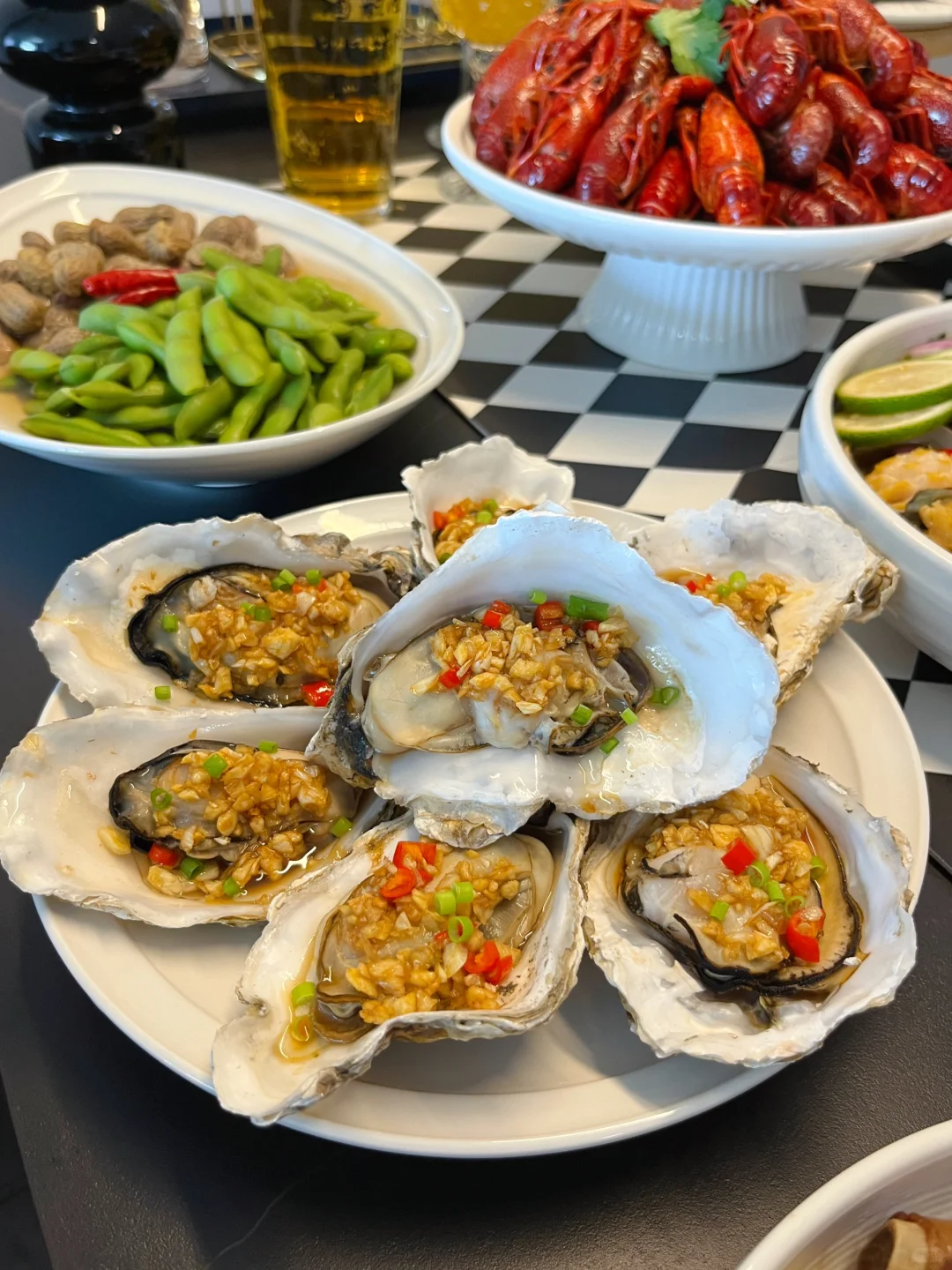 小海鲜,再配上点烤串、毛豆花生、小龙虾,香辣柠檬鸡爪,太欢乐了不是~